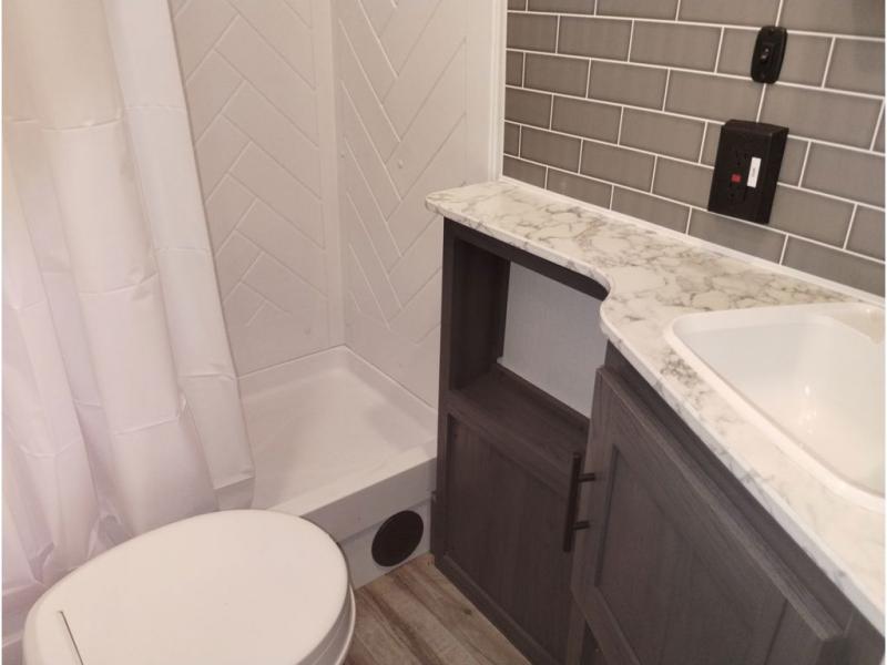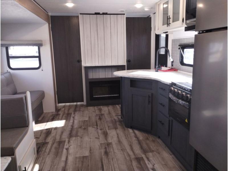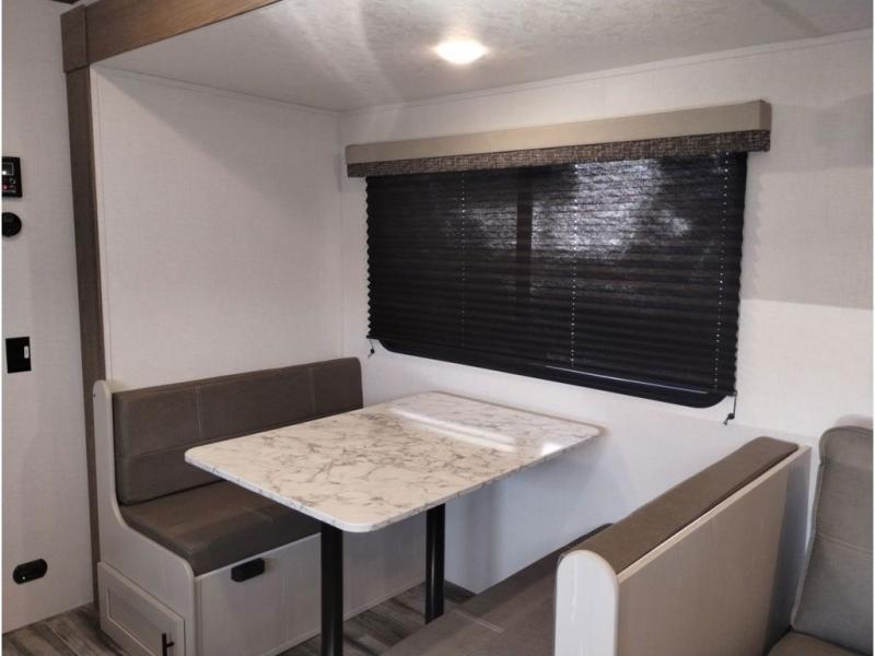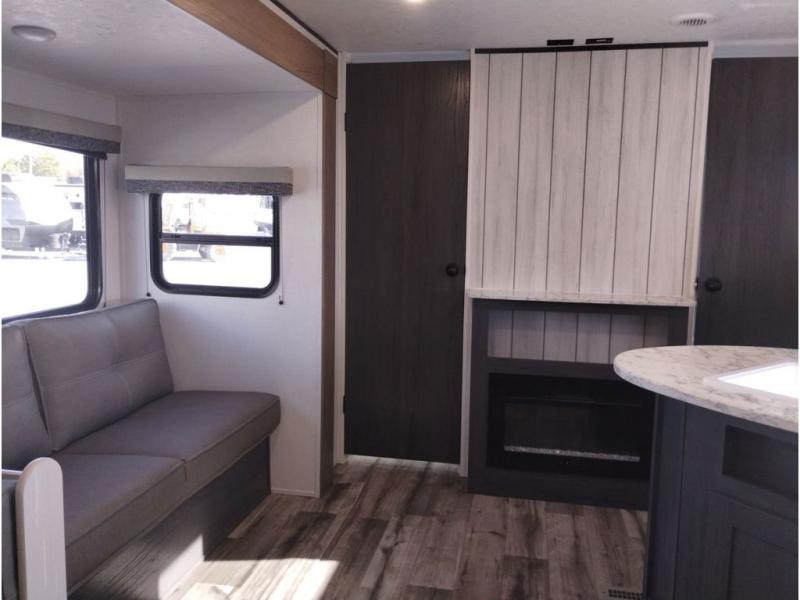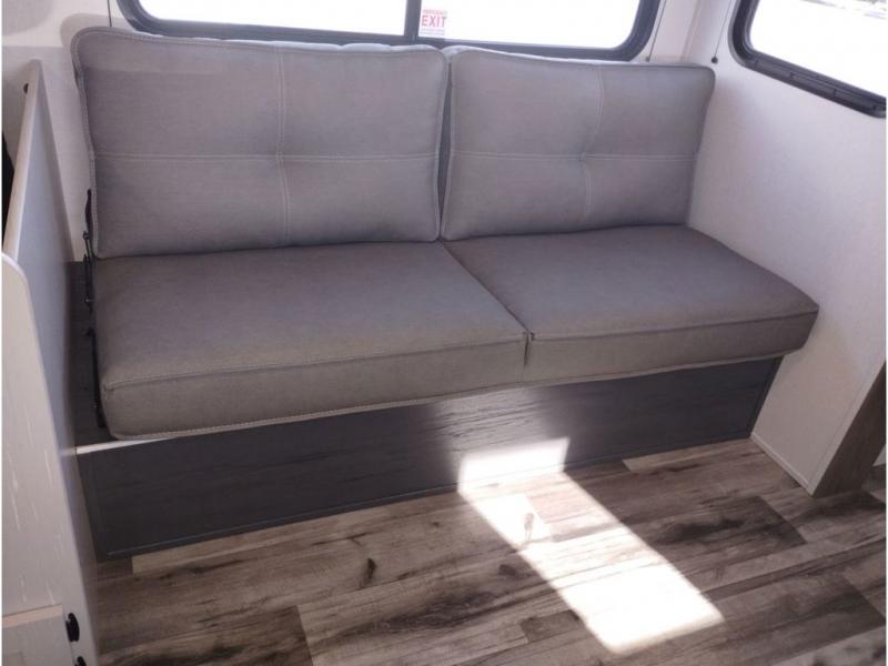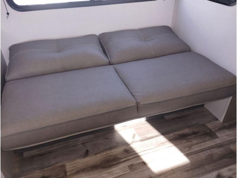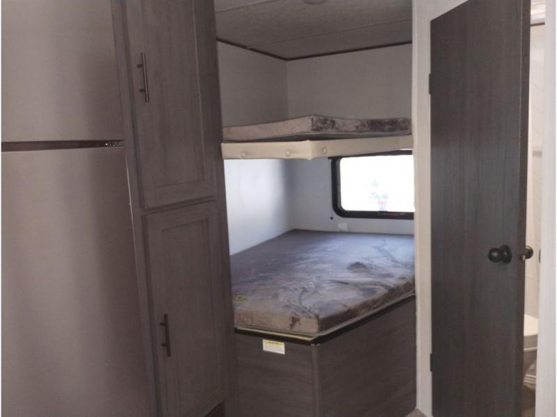 Get ready for fun and relaxation at the campgrounds with this trailer in your campsite. You can fish in the river, hike the trails and relax under the power awning before heading inside to enjoy the comforts of home. You will also enjoy having double access to the private bedroom which offers a residential queen bed and dual closets, plus the full bathroom will keep you refreshed after outdoor fun. The double-size bunks offer sleeping for four, and the furniture doubles as extra sleeping space. The cook will have full amenities including a 10 cu. ft. 12V refrigerator to store lots of cold items. And the single slide gives everyone more floor space.