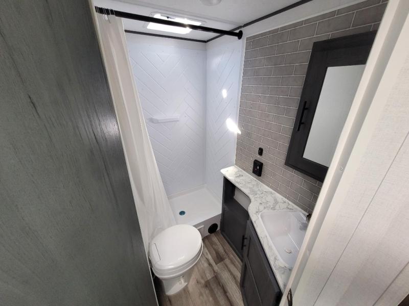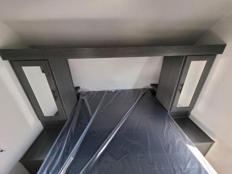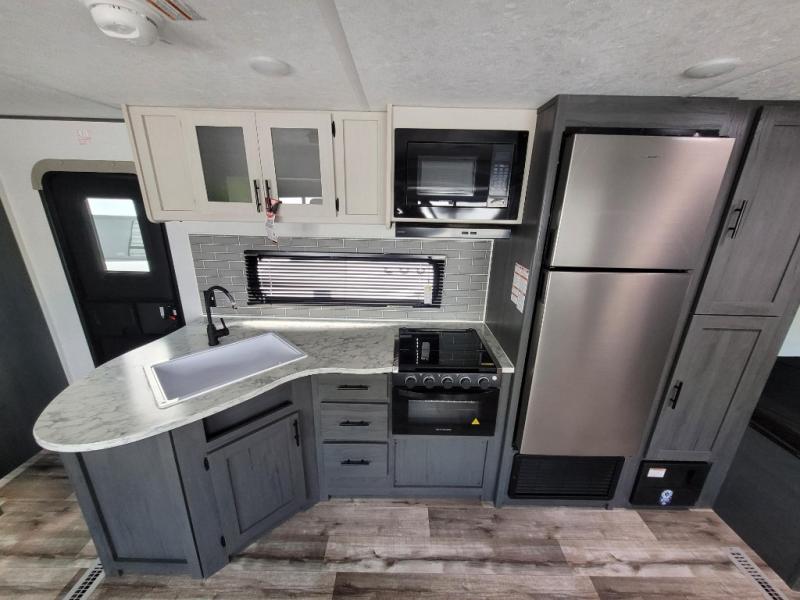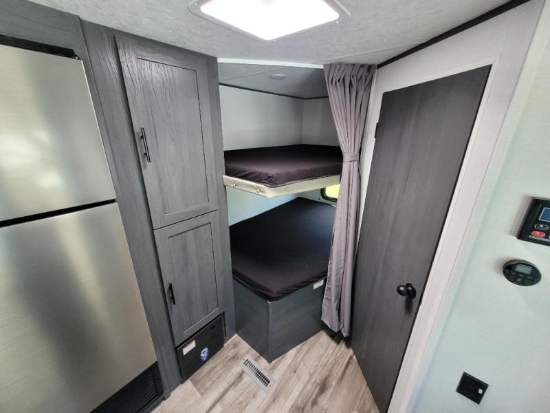 Get ready for fun and relaxation at the campgrounds with this trailer in your campsite. You can fish in the river, hike the trails and relax under the power awning before heading inside to enjoy the comforts of home. You will also enjoy having double access to the private bedroom which offers a residential queen bed and dual closets, plus the full bathroom will keep you refreshed after outdoor fun. The double-size bunks offer sleeping for four, and the furniture doubles as extra sleeping space. The cook will have full amenities including a 10 cu. ft. 12V refrigerator to store lots of cold items. And the large slide gives everyone more floor space.
