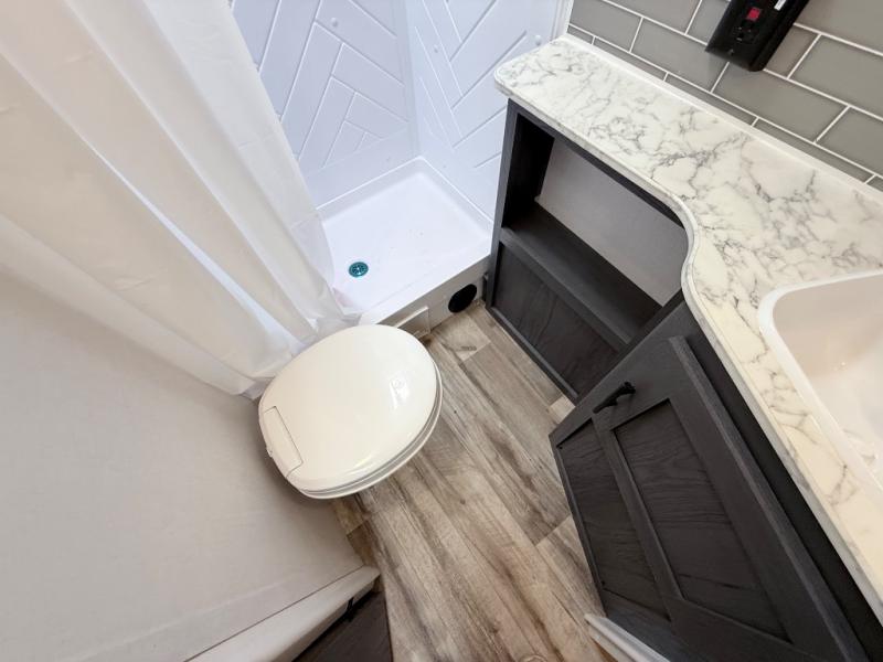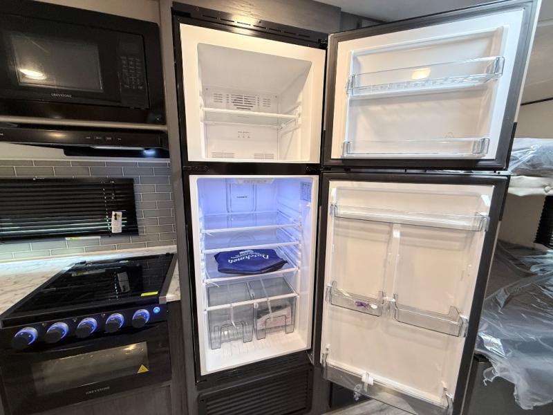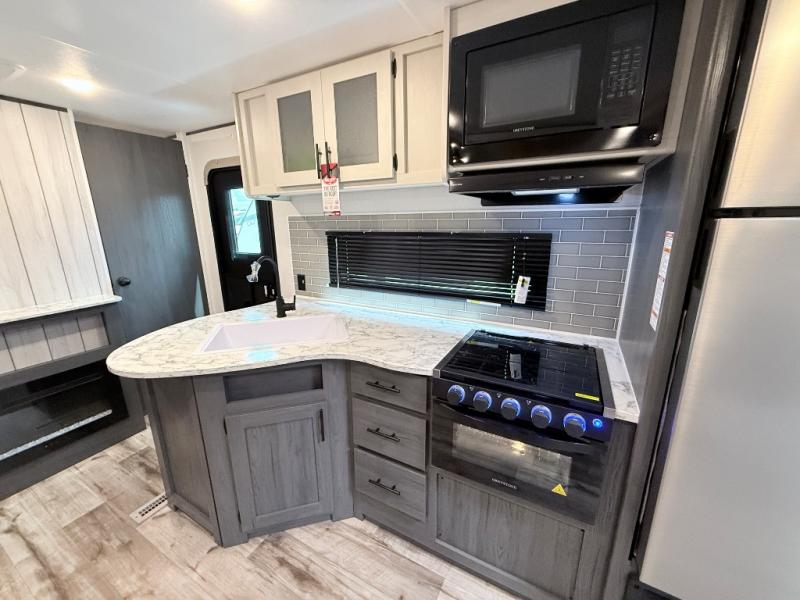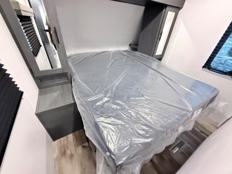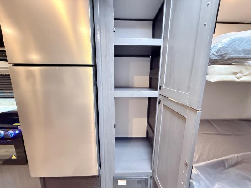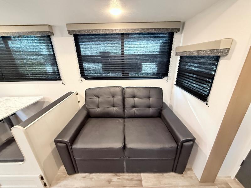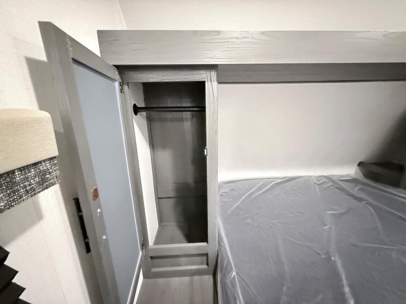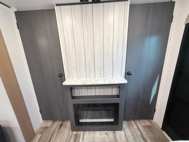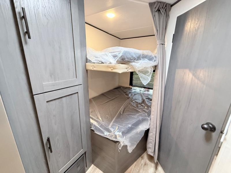 Get ready for fun and relaxation at the campgrounds with this trailer in your campsite. You can fish in the river, hike the trails and relax under the power awning before heading inside to enjoy the comforts of home. You will also enjoy having double access to the private bedroom which offers a residential queen bed and dual closets, plus the full bathroom will keep you refreshed after outdoor fun. The double-size bunks offer sleeping for four, and the furniture doubles as extra sleeping space. The cook will have full amenities including a 10 cu. ft. 12V refrigerator to store lots of cold items. And the large slide gives everyone more floor space.