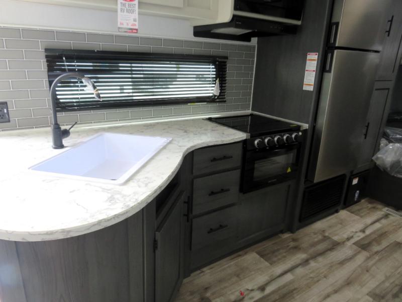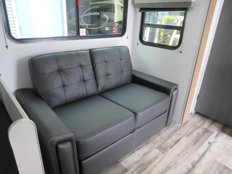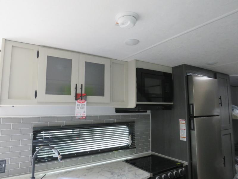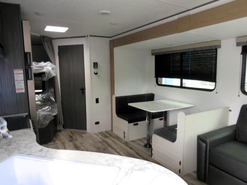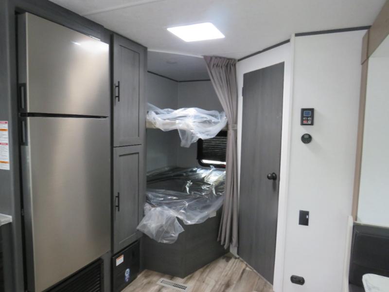 Get ready for fun and relaxation at the campgrounds with this trailer in your campsite. You can fish in the river, hike the trails and relax under the power awning before heading inside to enjoy the comforts of home. You will also enjoy having double access to the private bedroom which offers a residential queen bed and dual closets, plus the full bathroom will keep you refreshed after outdoor fun. The double-size bunks offer sleeping for four, and the furniture doubles as extra sleeping space. The cook will have full amenities including a 10 cu. ft. 12V refrigerator to store lots of cold items. And the large slide gives everyone more floor space.