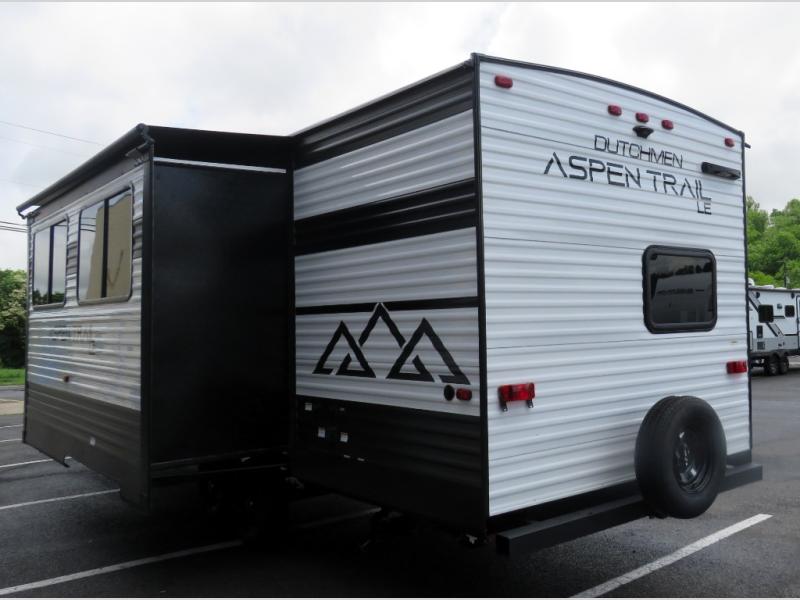 With any Aspen Trail LE travel trailer by Dutchmen, you will have front diamond plate protection, magnetic baggage door catches, and easy lube axles for smooth towing. The interior offers a Home Series interior design collection for an at-home feel, full extension drawer guides throughout, oversized windows, pleated shades, and no carpet to quickly clean up sand and water from the lake. You'll also appreciate the high efficiency furnace, on-demand tankless water heater, and the Solar Spirit Packages for off-grid capabilities. Make your selection today and enjoy a smaller, lighter-weight RV!
