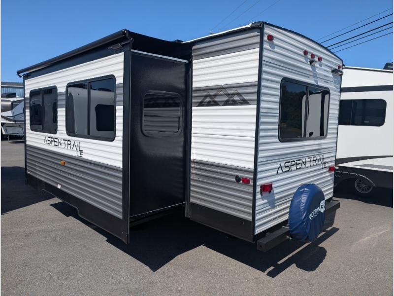 With any Aspen Trail LE travel trailer by Dutchmen, you will have a durable roof structure with a TPO roof, 3/8" decking, an insulated structure with a metal exterior panel, plus superior A/C cooling for those hot summer camping months. The interior offers a Home Series interior design collection for an at home feel, full extension drawer guides throughout, oversized windows, pleated shades, and no carpet to quickly clean up sand and water from the lake. You'll also appreciate the magnetic baggage door catches, a high output furnace, an on-demand water heater, and the Solar Spirit Packages that will allow you to do some off-grid camping. Make your selection today and enjoy a smaller, lighter-weight RV!