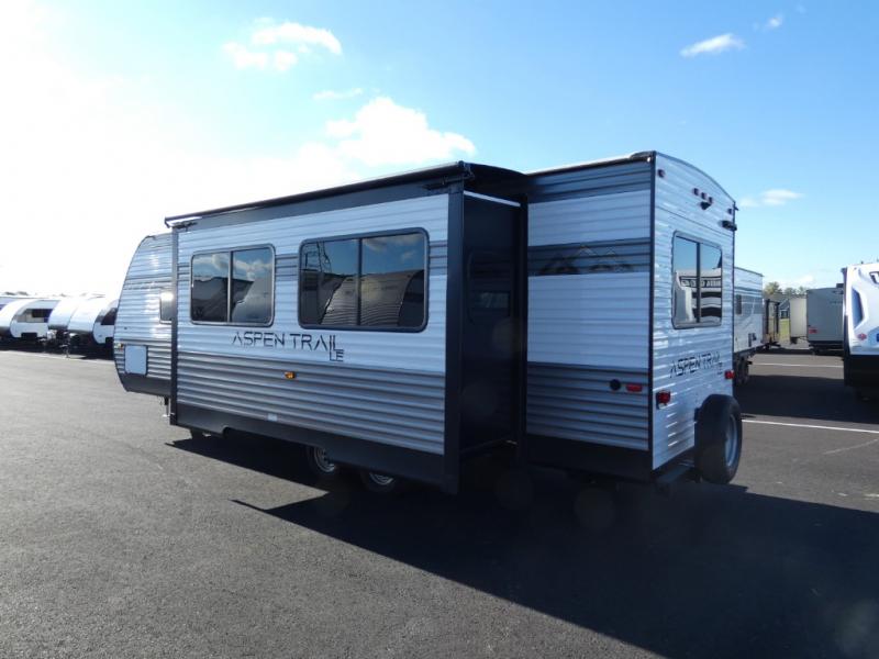 With any Aspen Trail LE travel trailer by Dutchmen, you will have a durable roof structure with a TPO roof, 3/8" decking, an insulated structure with a metal exterior panel, plus superior A/C cooling for those hot summer camping months. The interior offers a Home Series interior design collection for an at home feel, full extension drawer guides throughout, oversized windows, pleated shades, and no carpet to quickly clean up sand and water from the lake. You'll also appreciate the magnetic baggage door catches, a high output furnace, an on-demand water heater, and the Solar Spirit Packages that will allow you to do some off-grid camping. Make your selection today and enjoy a smaller, lighter-weight RV!