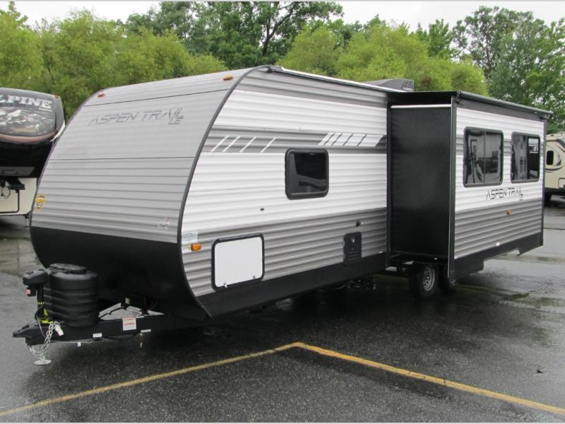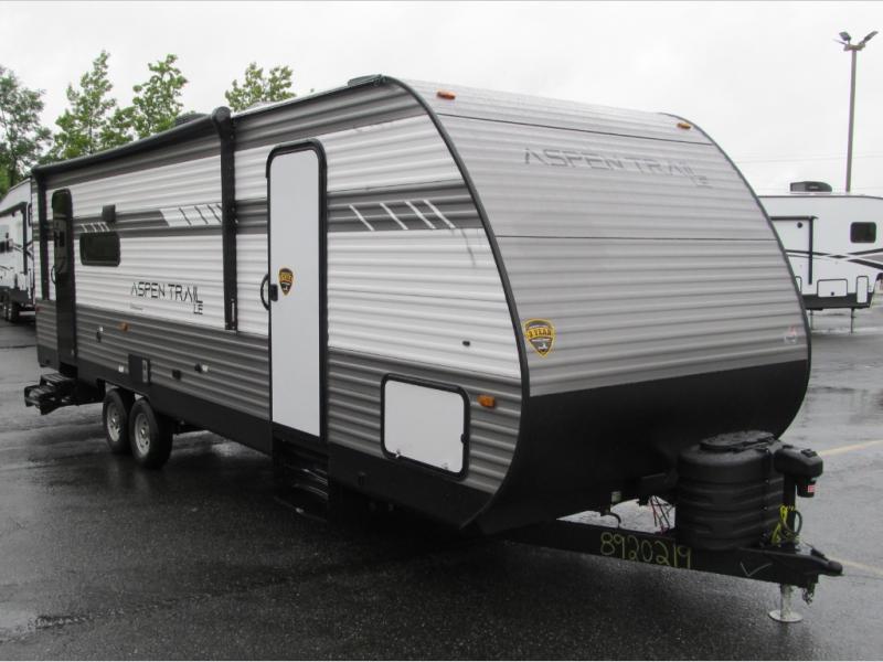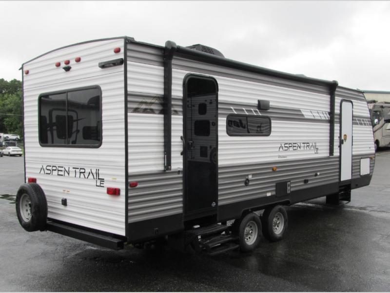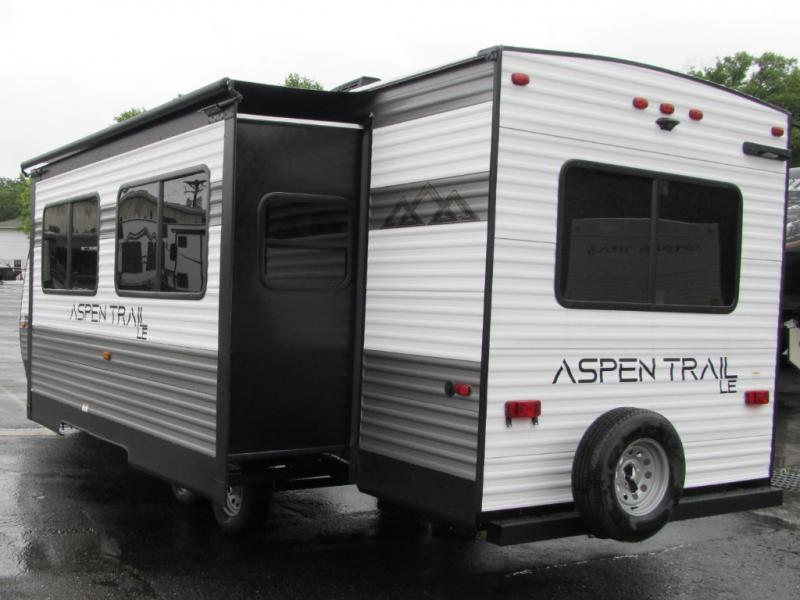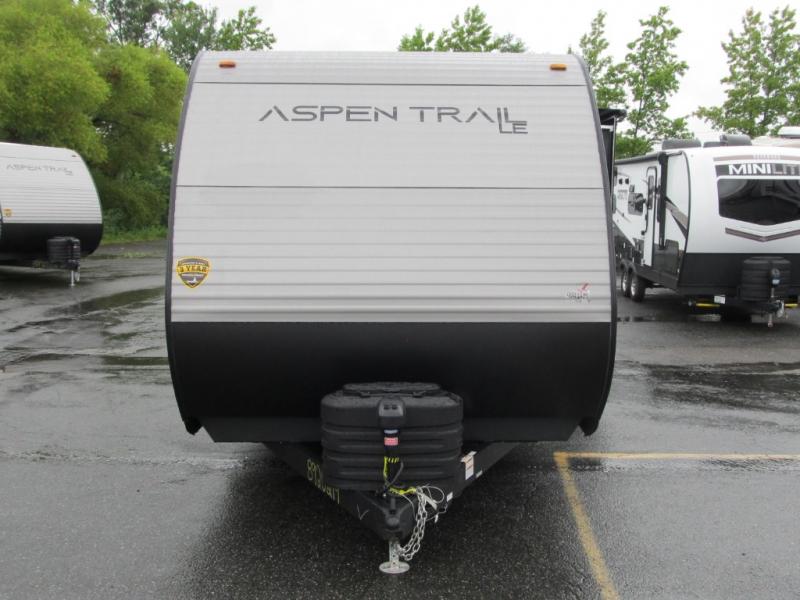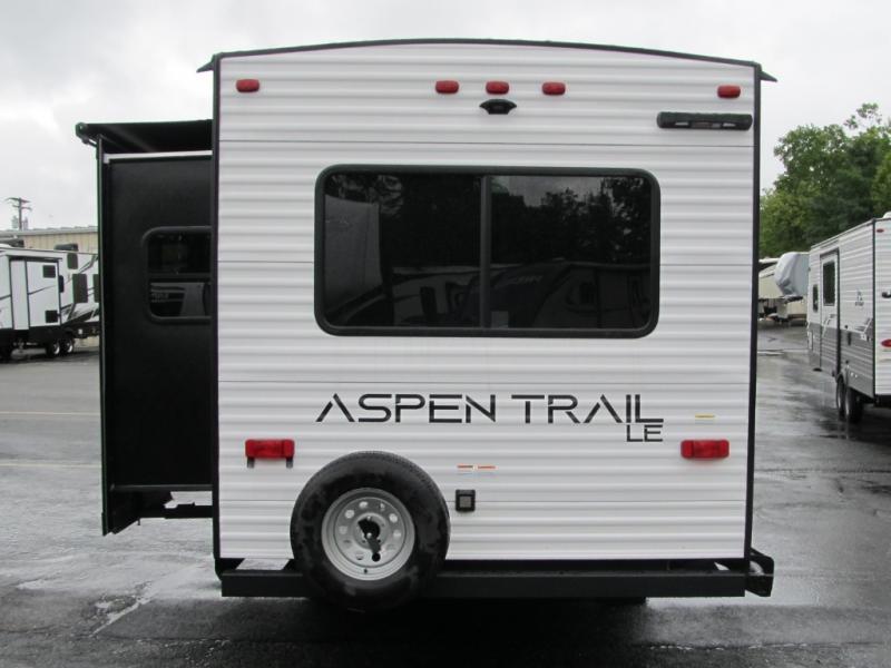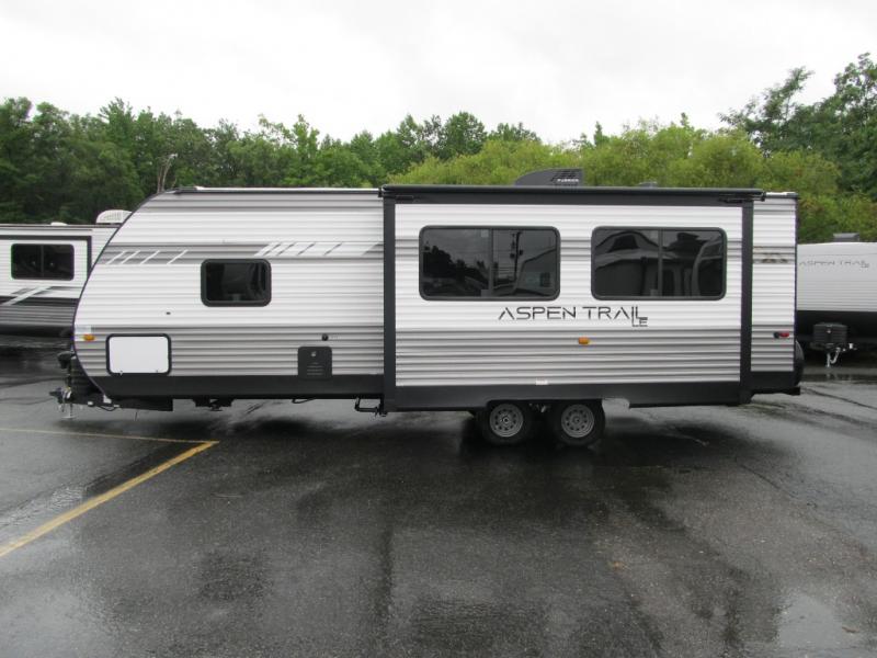With any Aspen Trail LE travel trailer by Dutchmen, you will have a durable roof structure with a TPO roof, 3/8" decking, an insulated structure with a metal exterior panel, plus superior A/C cooling for those hot summer camping months. The interior offers a Home Series interior design collection for an at home feel, full extension drawer guides throughout, oversized windows, pleated shades, and no carpet to quickly clean up sand and water from the lake. You'll also appreciate the magnetic baggage door catches, a high output furnace, an on-demand water heater, and the Solar Spirit Packages that will allow you to do some off-grid camping. Make your selection today and enjoy a smaller, lighter-weight RV!