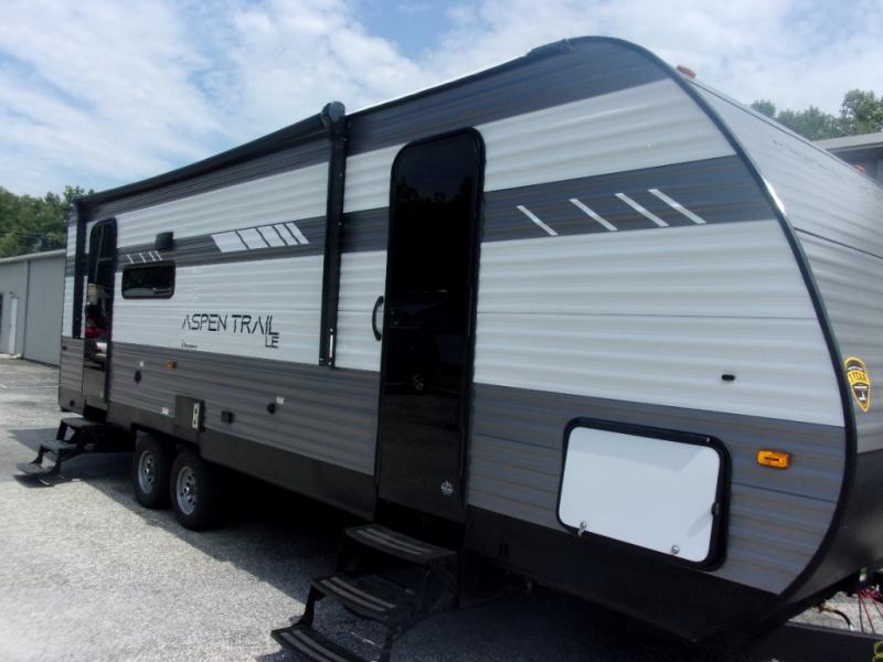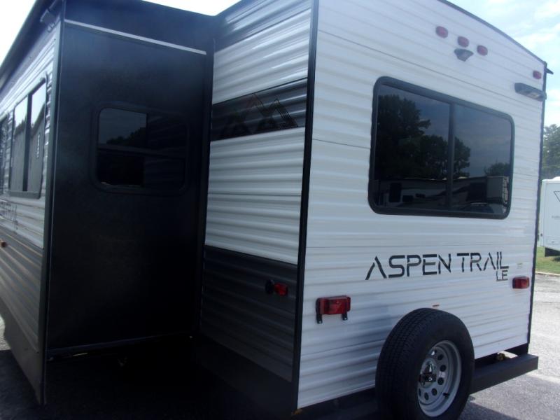 With any Aspen Trail LE travel trailer by Dutchmen, you will have a durable roof structure with a TPO roof, 3/8" decking, an insulated structure with a metal exterior panel, plus superior A/C cooling for those hot summer camping months. The interior offers a Home Series interior design collection for an at home feel, full extension drawer guides throughout, oversized windows, pleated shades, and no carpet to quickly clean up sand and water from the lake. You'll also appreciate the magnetic baggage door catches, a high output furnace, an on-demand water heater, and the Solar Spirit Packages that will allow you to do some off-grid camping. Make your selection today and enjoy a smaller, lighter-weight RV!