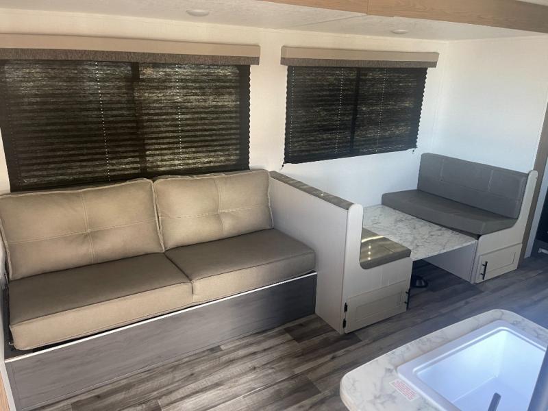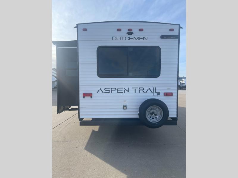 With any Aspen Trail LE travel trailer by Dutchmen, you will have a durable roof structure with a TPO roof, 3/8" decking, an insulated structure with a metal exterior panel, plus superior A/C cooling for those hot summer camping months. The interior offers a Home Series interior design collection for an at home feel, full extension drawer guides throughout, oversized windows, pleated shades, and no carpet to quickly clean up sand and water from the lake. You'll also appreciate the magnetic baggage door catches, a high output furnace, an on-demand water heater, and the Solar Spirit Packages that will allow you to do some off-grid camping. Make your selection today and enjoy a smaller, lighter-weight RV!