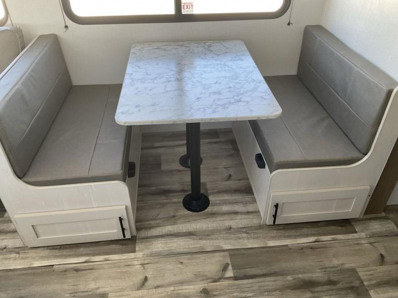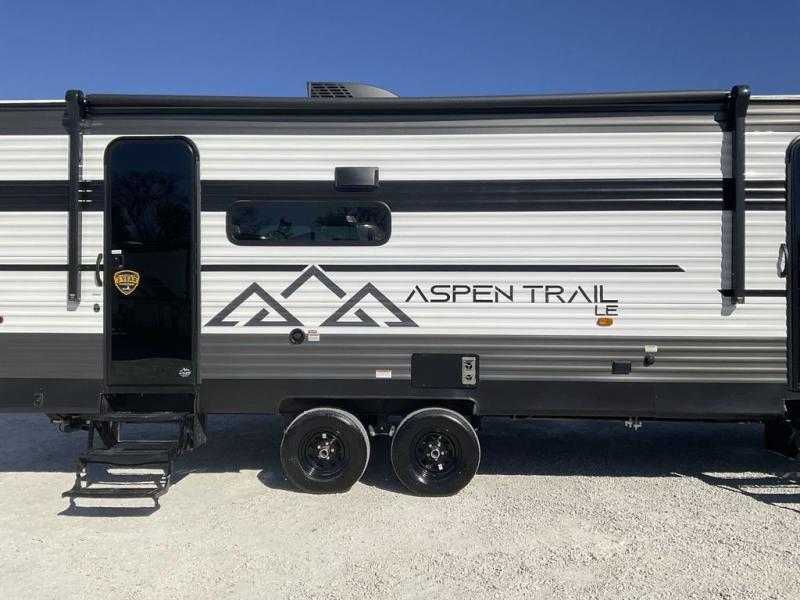 With any Aspen Trail LE travel trailer by Dutchmen, you will have a durable roof structure with a TPO roof, 3/8" decking, an insulated structure with a metal exterior panel, plus superior A/C cooling for those hot summer camping months. The interior offers a Home Series interior design collection for an at home feel, full extension drawer guides throughout, oversized windows, pleated shades, and no carpet to quickly clean up sand and water from the lake. You'll also appreciate the magnetic baggage door catches, a high output furnace, an on-demand water heater, and the Solar Spirit Packages that will allow you to do some off-grid camping. Make your selection today and enjoy a smaller, lighter-weight RV!