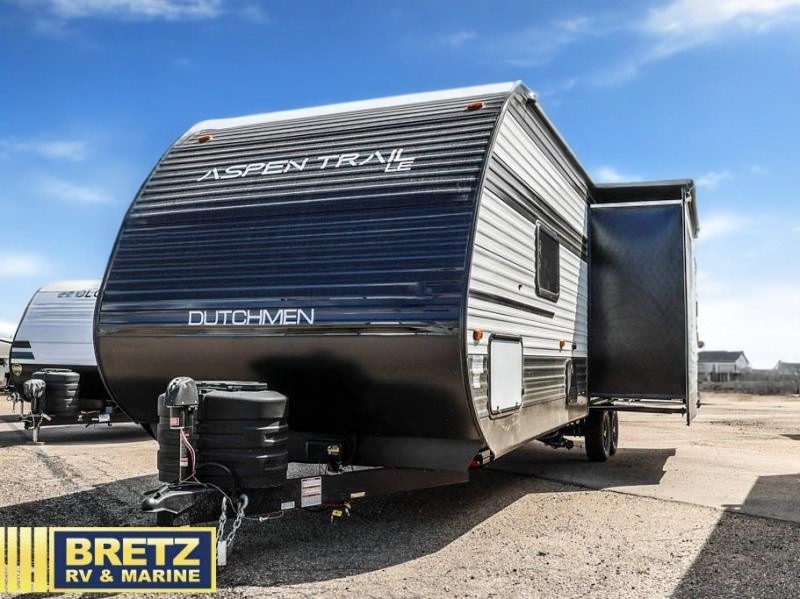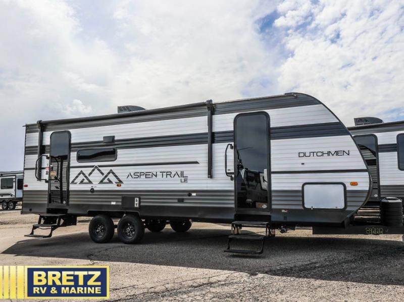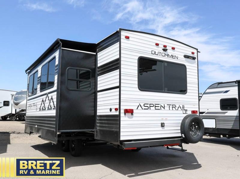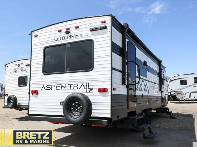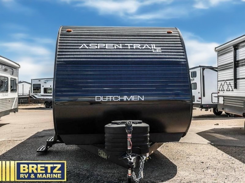 With any Aspen Trail LE travel trailer by Dutchmen, you will have front diamond plate protection, magnetic baggage door catches, and easy lube axles for smooth towing. The interior offers a Home Series interior design collection for an at-home feel, full extension drawer guides throughout, oversized windows, pleated shades, and no carpet to quickly clean up sand and water from the lake. You'll also appreciate the high efficiency furnace, on-demand tankless water heater, and the Solar Spirit Packages for off-grid capabilities. Make your selection today and enjoy a smaller, lighter-weight RV!