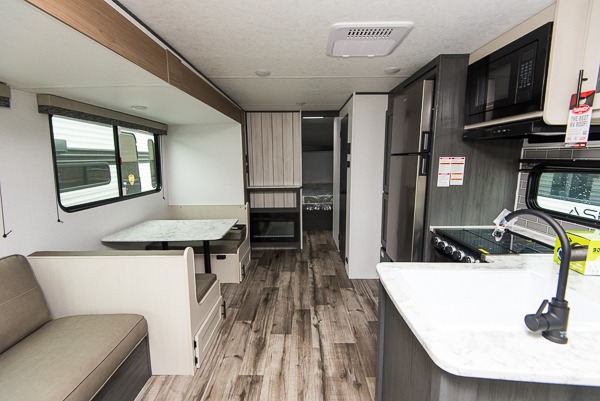 With any Aspen Trail LE travel trailer by Dutchmen, you will have front diamond plate protection, magnetic baggage door catches, and easy lube axles for smooth towing. The interior offers a Home Series interior design collection for an at-home feel, full extension drawer guides throughout, oversized windows, pleated shades, and no carpet to quickly clean up sand and water from the lake. You'll also appreciate the high efficiency furnace, on-demand tankless water heater, and the Solar Spirit Packages for off-grid capabilities. Make your selection today and enjoy a smaller, lighter-weight RV!