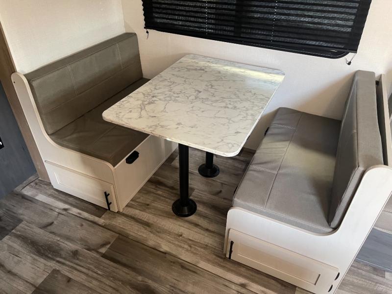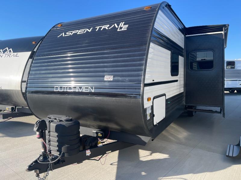 With any Aspen Trail LE travel trailer by Dutchmen, you will have a durable roof structure with a TPO roof, 3/8" decking, an insulated structure with a metal exterior panel, plus superior A/C cooling for those hot summer camping months. The interior offers a Home Series interior design collection for an at home feel, full extension drawer guides throughout, oversized windows, pleated shades, and no carpet to quickly clean up sand and water from the lake. You'll also appreciate the magnetic baggage door catches, a high output furnace, an on-demand water heater, and the Solar Spirit Packages that will allow you to do some off-grid camping Make your selection today and enjoy a smaller, lighter-weight RV!