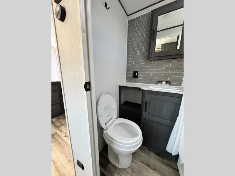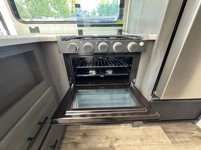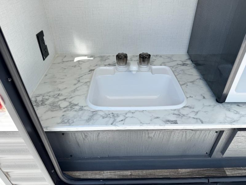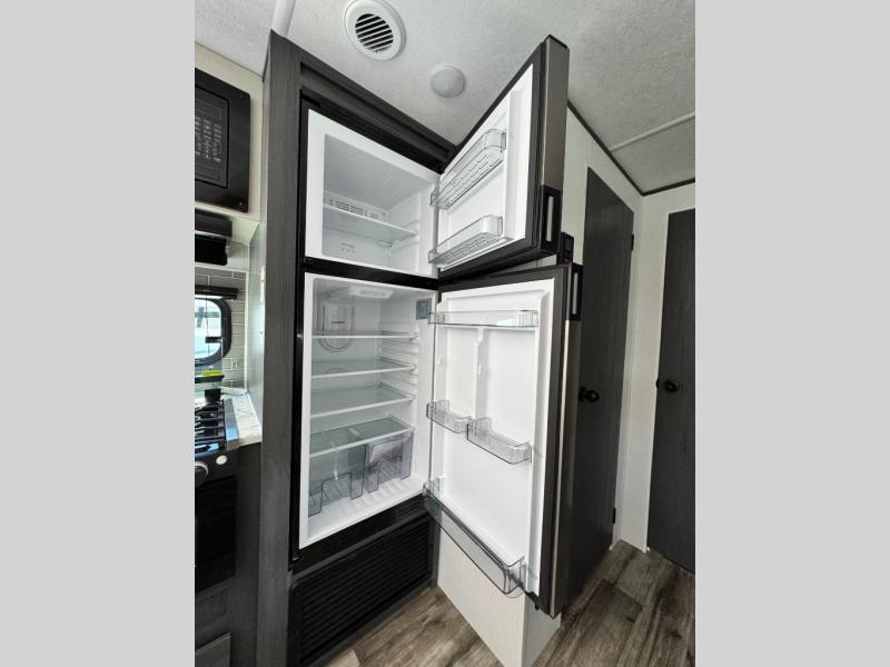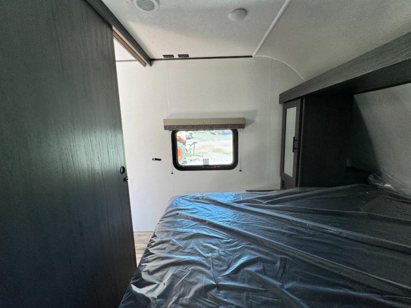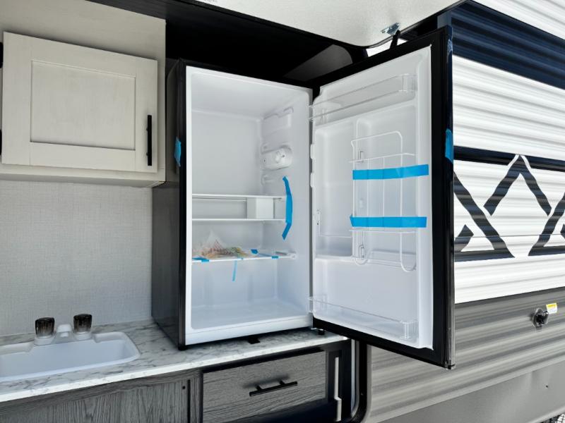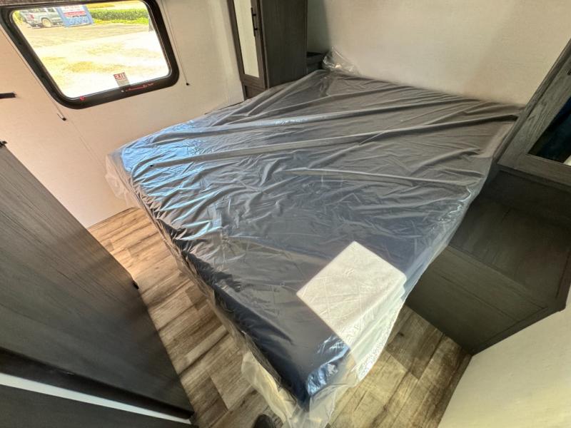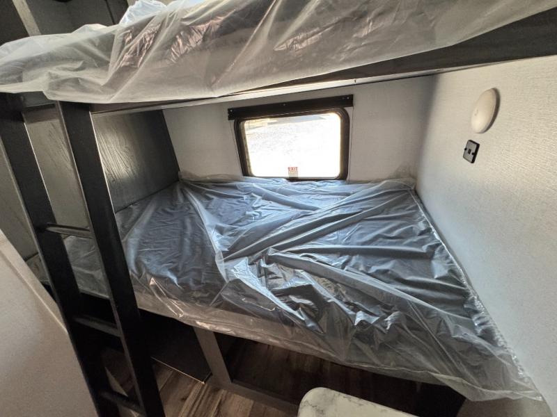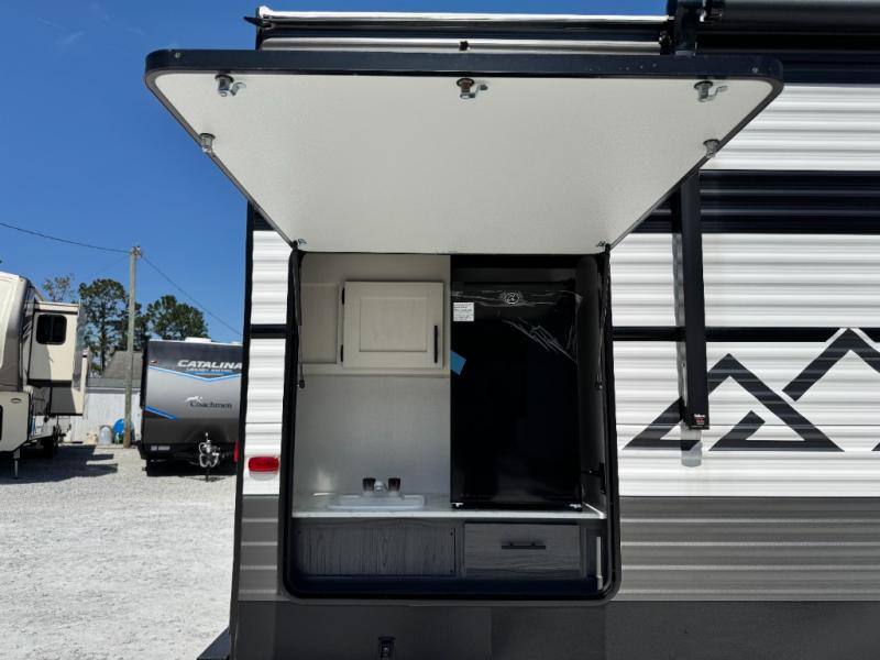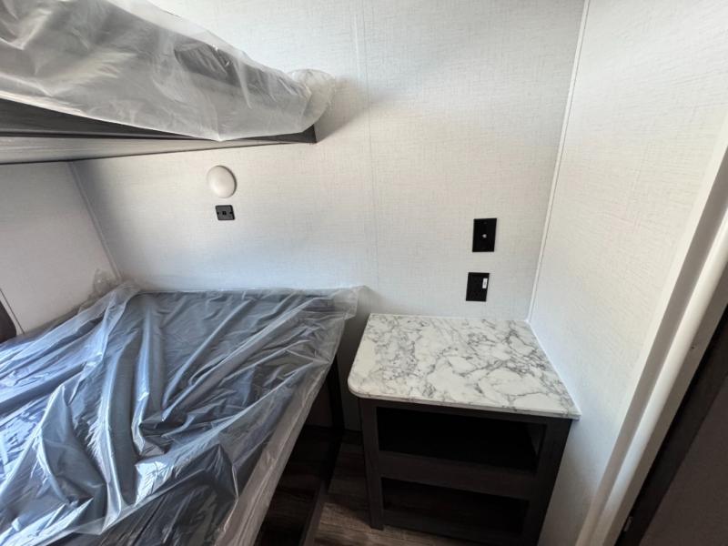 This travel trailer is one your whole crew will love! There is a rear private bunkhouse with double-size bunks for the little ones, a front private bedroom for you, and a booth dinette and jackknife sofa for even more sleeping space! The chef has their choice to cook indoors on the three burner range and microwave oven, or head outdoors to cook on the outdoor kitchen! The full bath will let everyone clean up each day, and the fireplace and large slide out will make your space feel more like home. And don't overlook the pass-through storage and 16' power awning with LED lights!