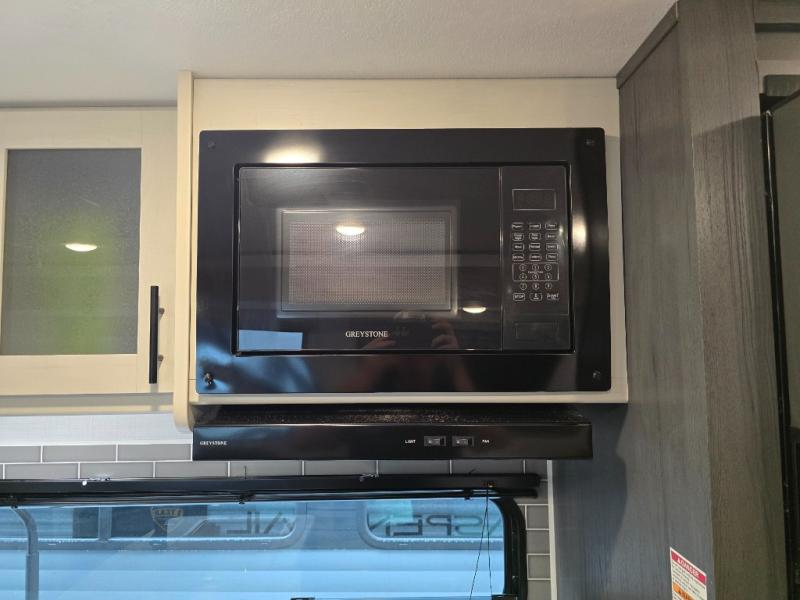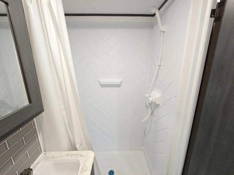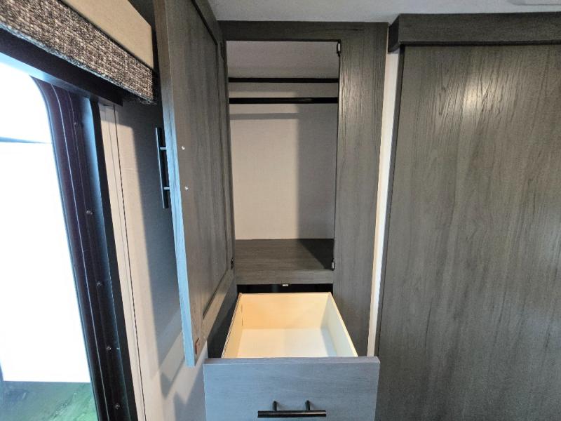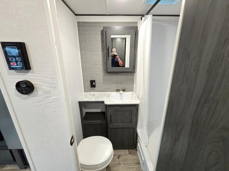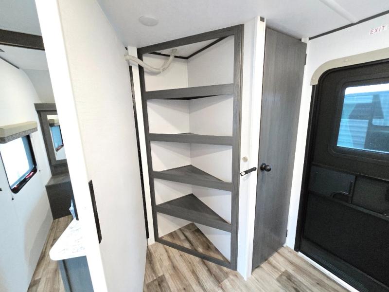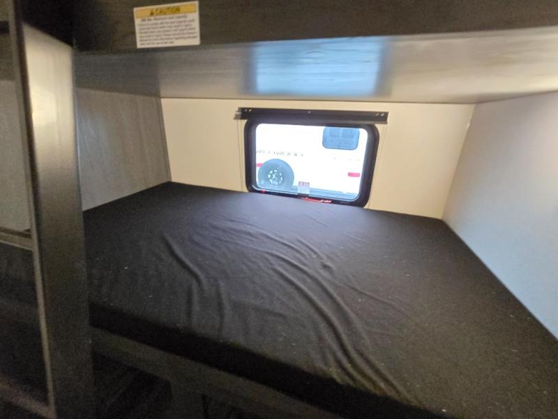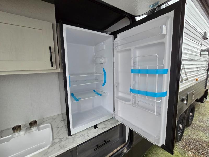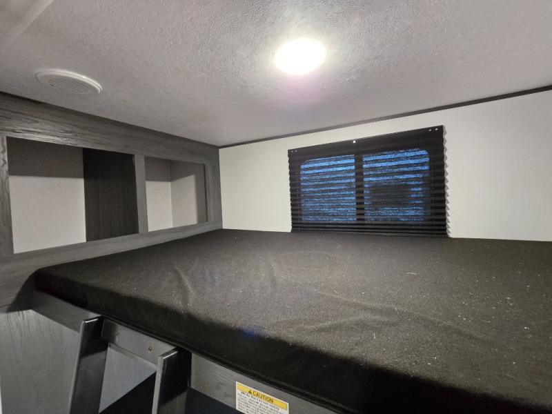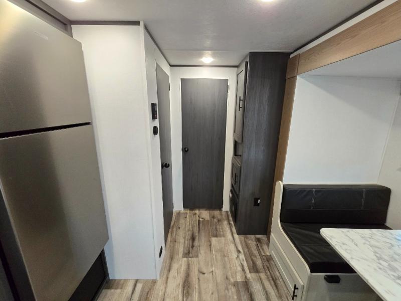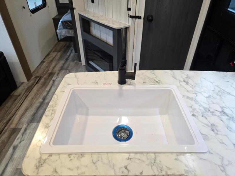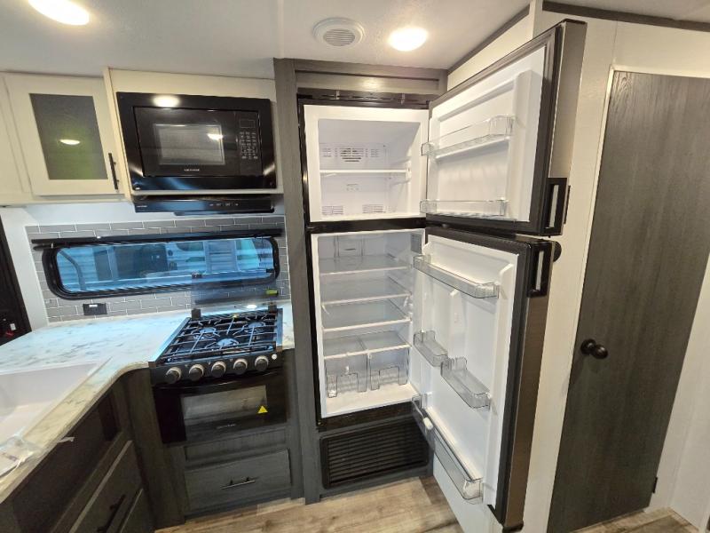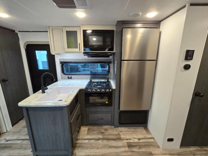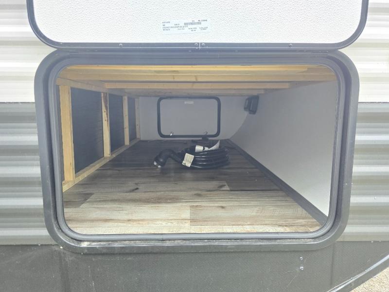 This travel trailer is one your whole crew will love! There is a rear private bunkhouse with double-size bunks for the little ones, a front private bedroom for you, and a booth dinette and jackknife sofa for even more sleeping space! The chef has their choice to cook indoors on the three burner range and microwave oven, or head outdoors to cook on the outdoor kitchen! The full bath will let everyone clean up each day, and the fireplace and large slide out will make your space feel more like home. And don't overlook the pass-through storage and 16' power awning with LED lights!