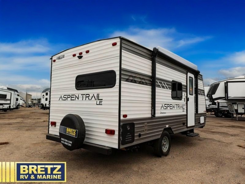 Any Aspen Trail Mini travel trailer by Dutchmen RV will provide you and your family a lightweight and compact unit filled with comfort and style. Each unit features front diamond plate protection from road debris as you travel, and easy lube axles for great performance. Inside, floorplan layouts are designed for four to eight depending on your choice and whether you would like a bunk model or a slide for added space. You will appreciate the upgraded residential flooring, LED lighting, the Systems Monitor Panel, full extension drawer guides throughout, as well as a two-burner range top and microwave for cooking, and a complete bath for added convenience. Come choose your favorite compact, lightweight Aspen Trail Mini and enjoy your next adventure!
