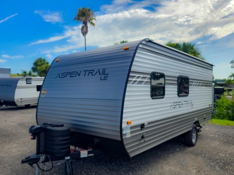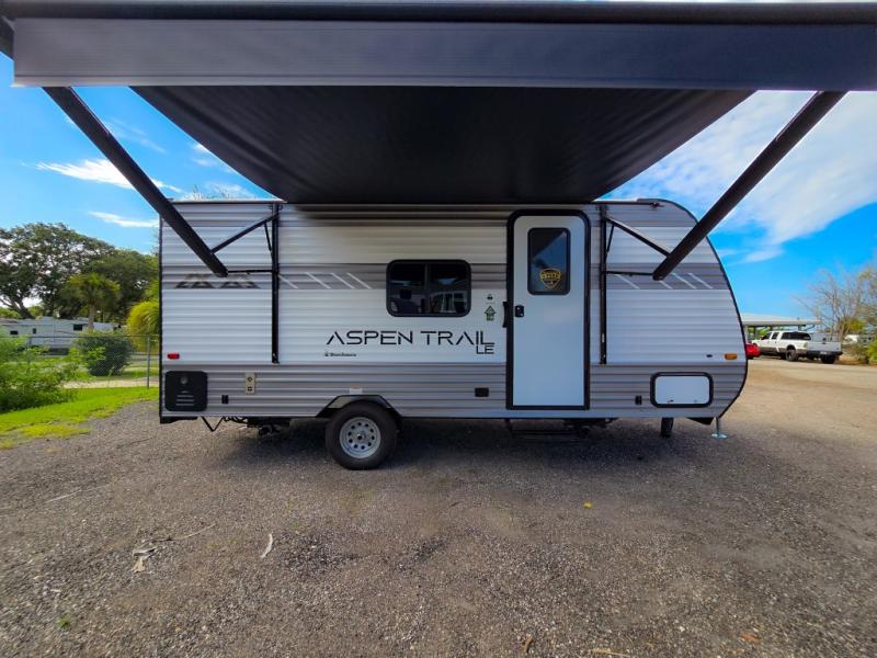 Any Aspen Trail Mini travel trailer by Dutchmen RV will provide you and your family a lightweight and compact unit filled with comfort and style. Each unit features front diamond plate protection from road debris as you travel, and easy lube axles for great performance. Inside, floorplan layouts are designed for four to eight depending on your choice and whether you would like a bunk model or a slide for added space. You will appreciate the upgraded residential flooring, LED lighting, the Systems Monitor Panel, full extension drawer guides throughout, as well as a two-burner range top and microwave for cooking, and a complete bath for added convenience. Come choose your favorite compact, lightweight Aspen Trail Mini and enjoy your next adventure!