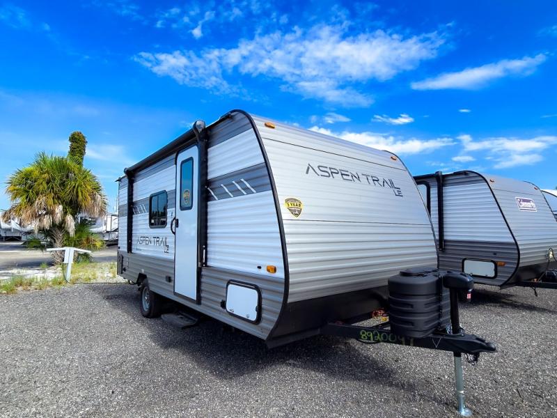 Any Aspen Trail Mini travel trailer by Dutchmen RV will provide you and your family a lightweight and compact unit filled with comfort and style. Each unit features front diamond plate protection from road debris as you travel, and easy lube axles for great performance. Inside, floorplan layouts are designed for four to eight depending on your choice and whether you would like a bunk model or a slide for added space. You will appreciate the upgraded residential flooring, LED lighting, the Systems Monitor Panel, full extension drawer guides throughout, as well as a two-burner range top and microwave for cooking, and a complete bath for added convenience. Come choose your favorite compact, lightweight Aspen Trail Mini and enjoy your next adventure!