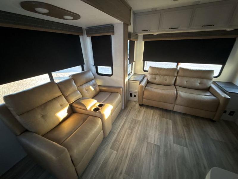 Each one of these Dutchmen RV Astoria Platinum fifth wheels feature a fiberglass exterior for added durability and an All Weather Thermal Package so you can camp all year long! There are also MorRyde Solid entry steps, slam latch baggage doors, and many more exterior conveniences. You'll enjoy a 200W solar panel for off-grid capabilities, an X1 back up camera for easy parking, and a power awning with LED lights for an inviting outdoor space. The interior is designed with bathroom backsplash, night shades throughout the living area, and Thomas Payne furniture collection. The on-demand tankless water heater will provide endless hot showers, and the dual ducted A/C will keep you cool all summer long.