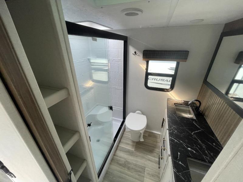 Each one of these Dutchmen RV Astoria Platinum fifth wheels feature a fiberglass exterior for added durability and an All Weather Thermal Package so you can camp all year long! There are also MorRyde Solid entry steps, slam latch baggage doors, and many more exterior conveniences. You'll enjoy a 200W solar panel for off-grid capabilities, an X1 back up camera for easy parking, and a power awning with LED lights for an inviting outdoor space. The interior is designed with bathroom backsplash, night shades throughout the living area, and Thomas Payne furniture collection. The on-demand tankless water heater will provide endless hot showers, and the dual ducted A/C will keep you cool all summer long.
