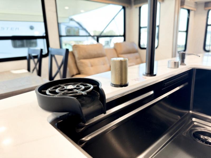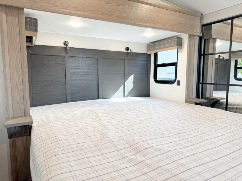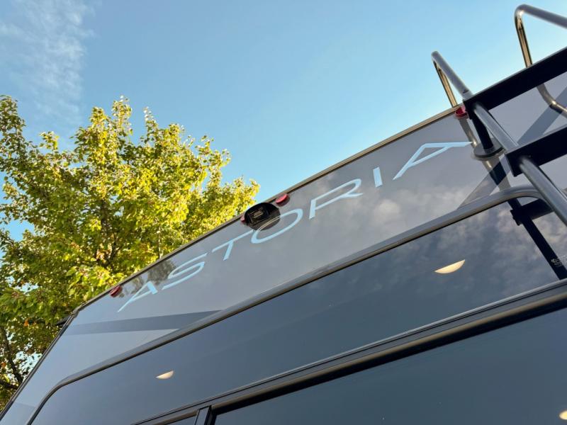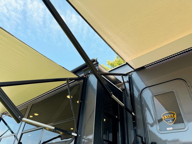 Each one of these Dutchmen RV Astoria Platinum fifth wheels feature a fiberglass exterior for added durability and an All Weather Thermal Package so you can camp all year long! There are also MorRyde Solid entry steps, slam latch baggage doors, and many more exterior conveniences. You'll enjoy a 200W solar panel for off-grid capabilities and a power awning with LED lights for an inviting outdoor space. The interior is designed with bathroom backsplash, night shades throughout the living area, and Thomas Payne furniture collection. The on-demand tankless water heater will provide endless hot showers, and the dual ducted A/C will keep you cool all summer long.