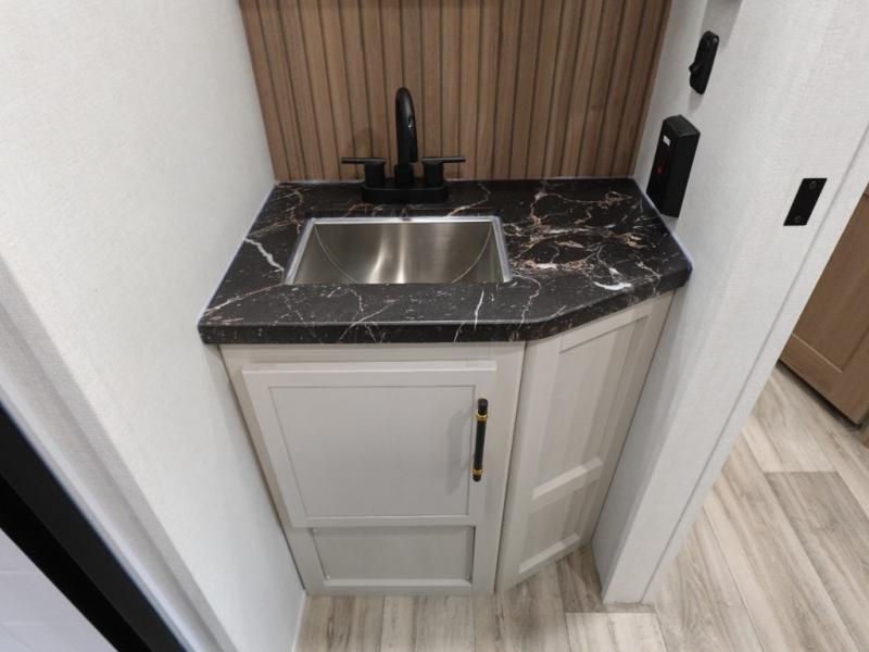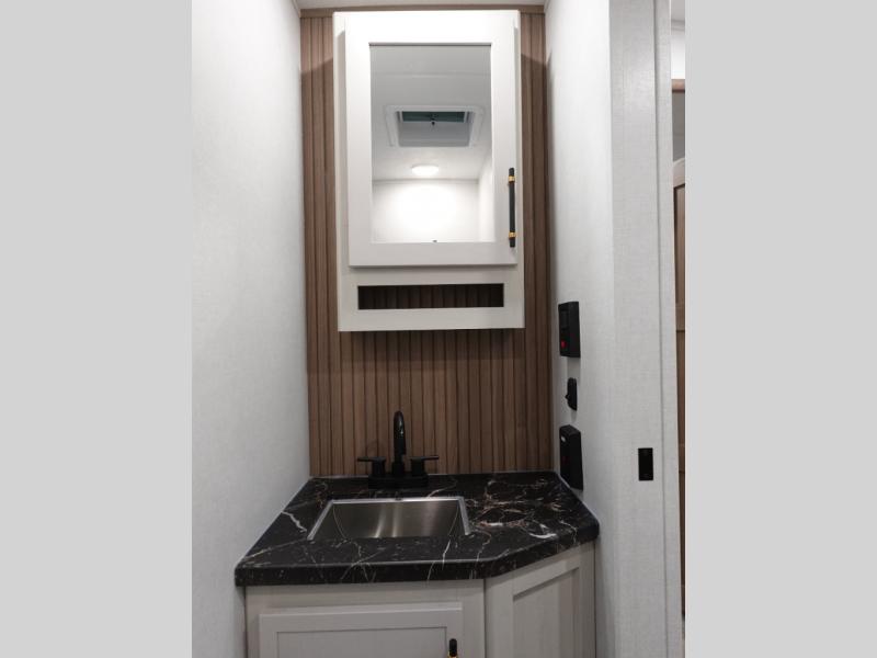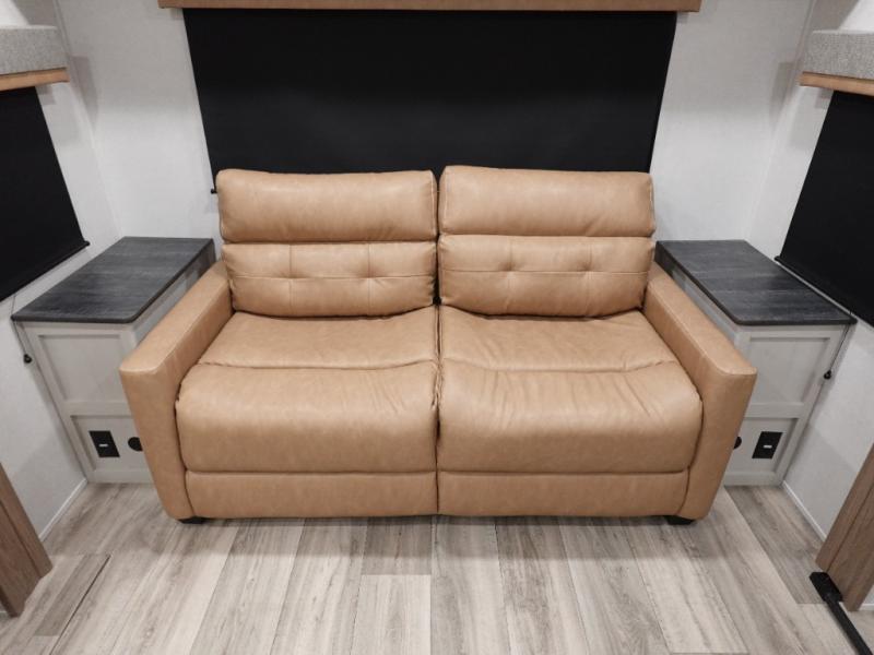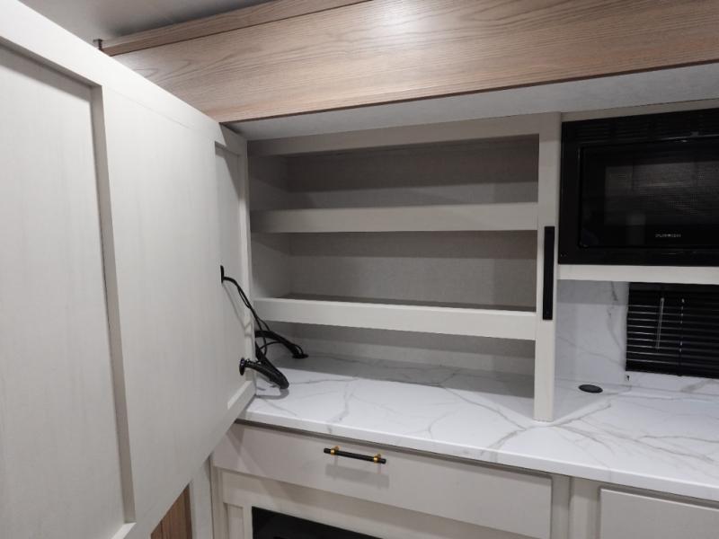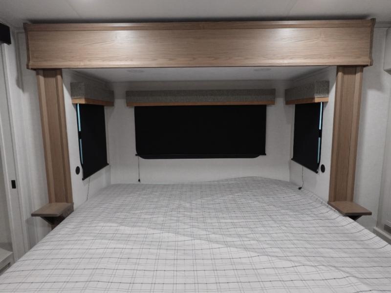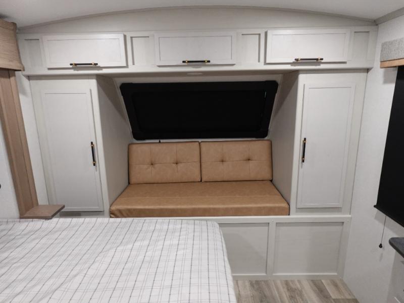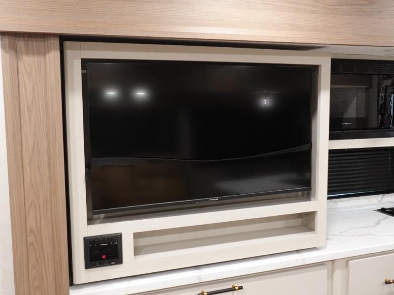 Feel at home the very first time you step into this triple slide Astoria travel trailer. You will love the spacious feel with opposing slides in the main living/kitchen area to the left of the door. A booth dinette and theater seating can be found in the slide along the curbside, and a tri-fold sofa along the rear wall all providing ample seating for your family and friends to enjoy. A kitchen island features a farm-style sink, and the upgraded kitchen also features stainless steel appliances which will provide all that you need for preparing and cooking while you travel. Rest easy at night on a comfortable king bed and find ample storage throughout. This all weather unit features an enclosed underbelly which makes full time RVing easy, and part-time travel something that you can do in any season, not just the summer!