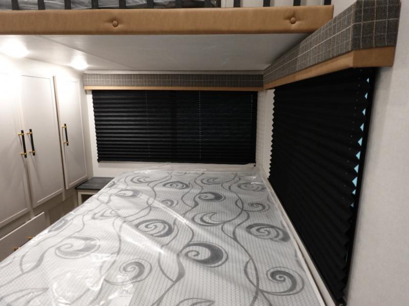Each one of these Dutchmen RV Astoria Platinum fifth wheels feature a fiberglass exterior for added durability and an All Weather Thermal Package so you can camp all year long! There are also MorRyde Solid entry steps, slam latch baggage doors, and many more exterior conveniences. You'll enjoy a 200W solar panel for off-grid capabilities, an X1 back up camera for easy parking, and a power awning with LED lights for an inviting outdoor space. The interior is designed with bathroom backsplash, night shades throughout the living area, and Thomas Payne furniture collection. The on-demand tankless water heater will provide endless hot showers, and the dual ducted A/C will keep you cool all summer long.