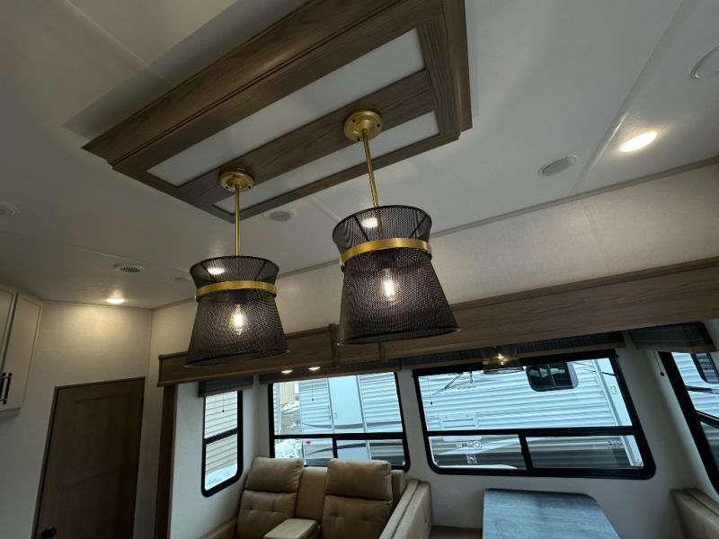 Each one of these Dutchmen RV Astoria Platinum fifth wheels feature a fiberglass exterior for added durability and an All Weather Thermal Package so you can camp all year long! There are also MorRyde Solid entry steps, slam latch baggage doors, and many more exterior conveniences. You'll enjoy a 200W solar panel for off-grid capabilities, an X1 back up camera for easy parking, and a power awning with LED lights for an inviting outdoor space. The interior is designed with bathroom backsplash, night shades throughout the living area, and Thomas Payne furniture collection. The on-demand tankless water heater will provide endless hot showers, and the dual ducted A/C will keep you cool all summer long.