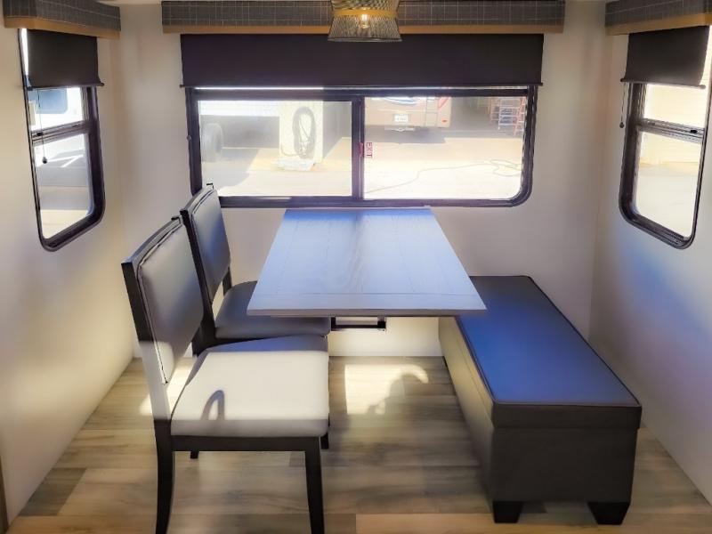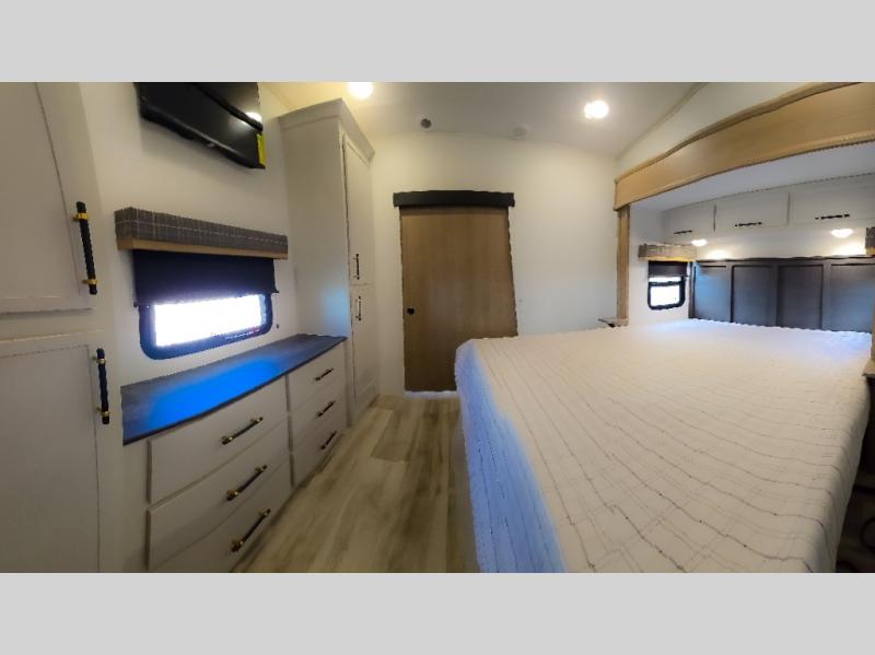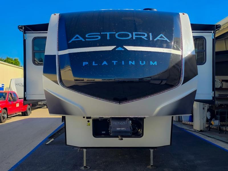 Each one of these Dutchmen RV Astoria Platinum fifth wheels feature a fiberglass exterior for added durability and an All Weather Thermal Package so you can camp all year long! There are also MorRyde Solid entry steps, slam latch baggage doors, and many more exterior conveniences. You'll enjoy a 200W solar panel for off-grid capabilities, an X1 back up camera for easy parking, and a power awning with LED lights for an inviting outdoor space. The interior is designed with bathroom backsplash, night shades throughout the living area, and Thomas Payne furniture collection. The on-demand tankless water heater will provide endless hot showers, and the dual ducted A/C will keep you cool all summer long.