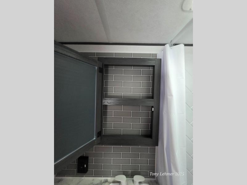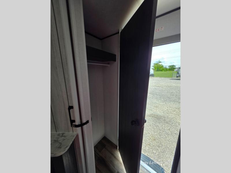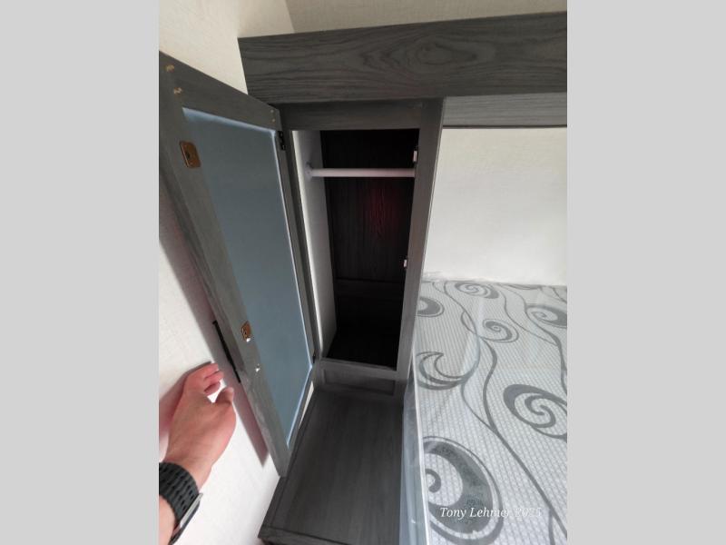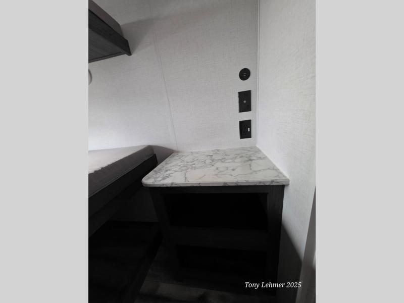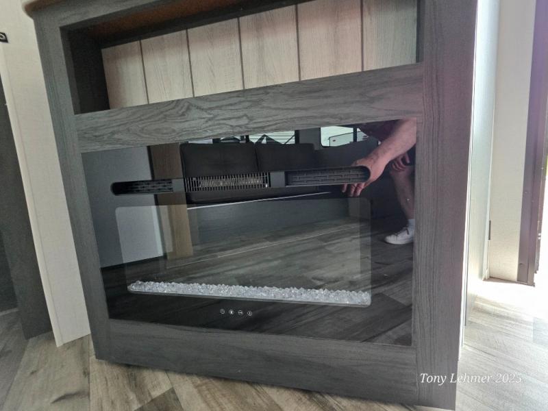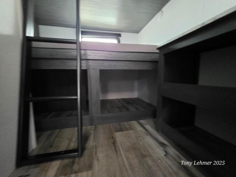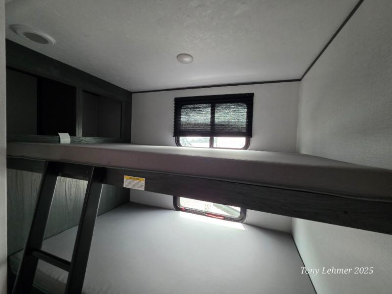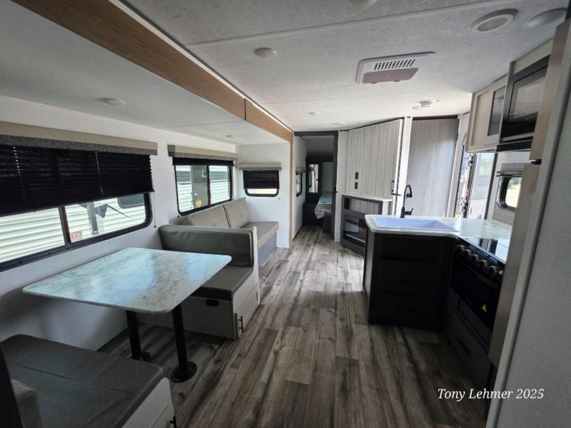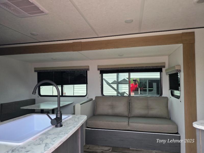 You will have everything you need in this travel trailer! Starting with a fully equipped interior kitchen, as well as an outdoor kitchen to prepare all of your favorite meals. Enjoy your meals at the booth dinette and then either play a card game or head to the jackknife sofa with footrests to let your stomach settle while you relax in front of the cozy fireplace at the hinged entertainment center. The full bathroom has a shower with exhaust fan so you can rinse all of the sand out of your hair or off your feet each night. The rear private bunkhouse has a set of bunk beds with a ladder for privacy while changing or sleeping!