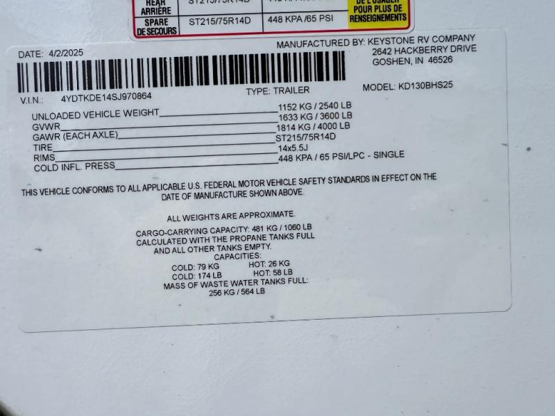 New 2025 Dutchmen RV Kodiak 130BHS Travel Trailer