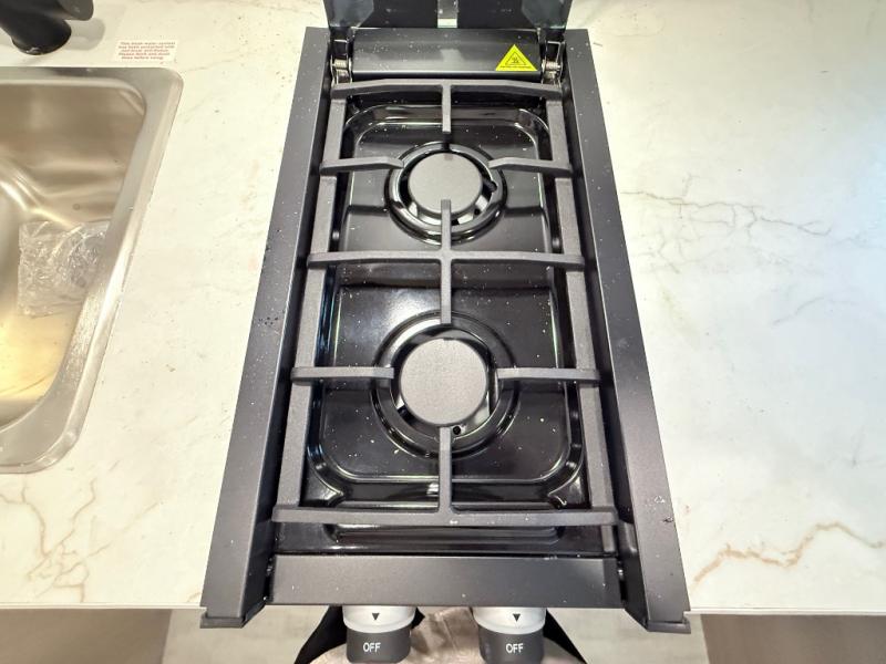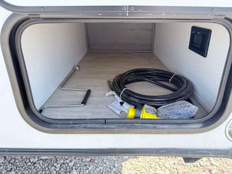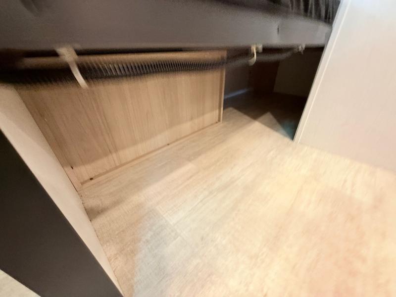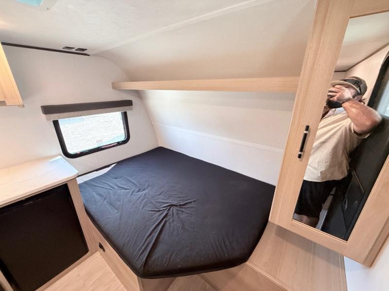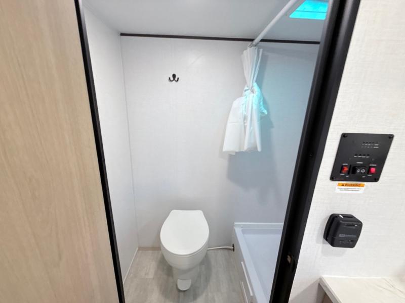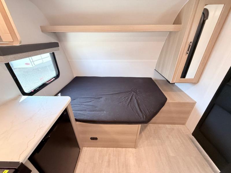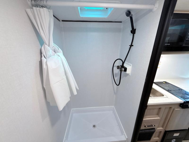 This family-friendly travel trailer is ideal for you! This model offers accommodations for all family members, starting with bunk beds for the kids (or kids at heart!), a queen bed for a comfortable night's sleep, and a private bathroom for personal convenience. Preparing meals has never been easier thanks to the two-burner cooktop, microwave for quick snacks, and a 3.3 cu. ft. refrigerator for keeping food and drinks fresh. You will be able to keep the RV organized due to an overhead cabinet for storing essentials, a closet for hanging clothes and gear, plus a pass-through storage for extra luggage or equipment.