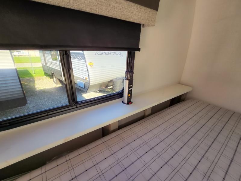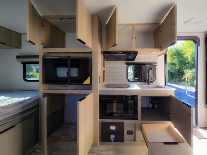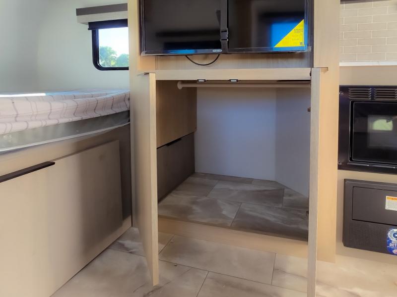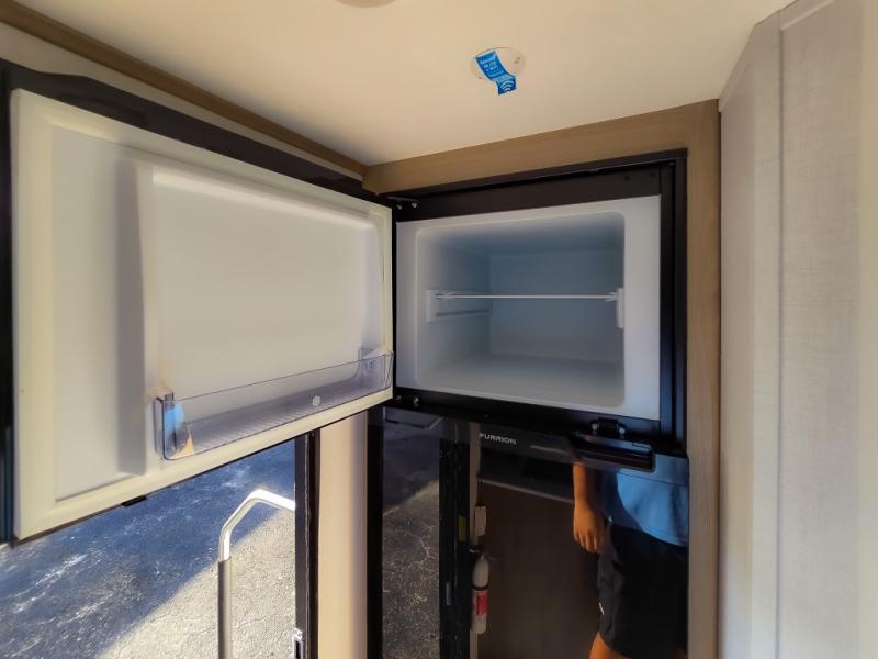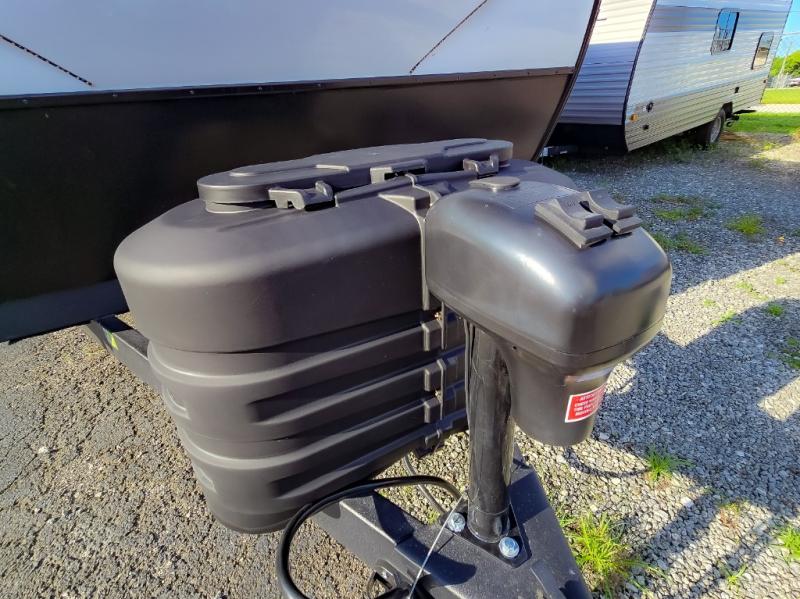 This cozy travel trailer will be perfect for weekend stays at the campground! You will have a front queen bed to sleep on instead of on the floor or an air mattress, and the full bath is a luxury you won't want to camp without. After you've whipped up breakfast on the two burner cooktop or in the microwave oven, you can dine at the jackknife sofa with an indoor/outdoor table. This model also includes a 10 cu. ft. refrigerator and pantry for food storage!