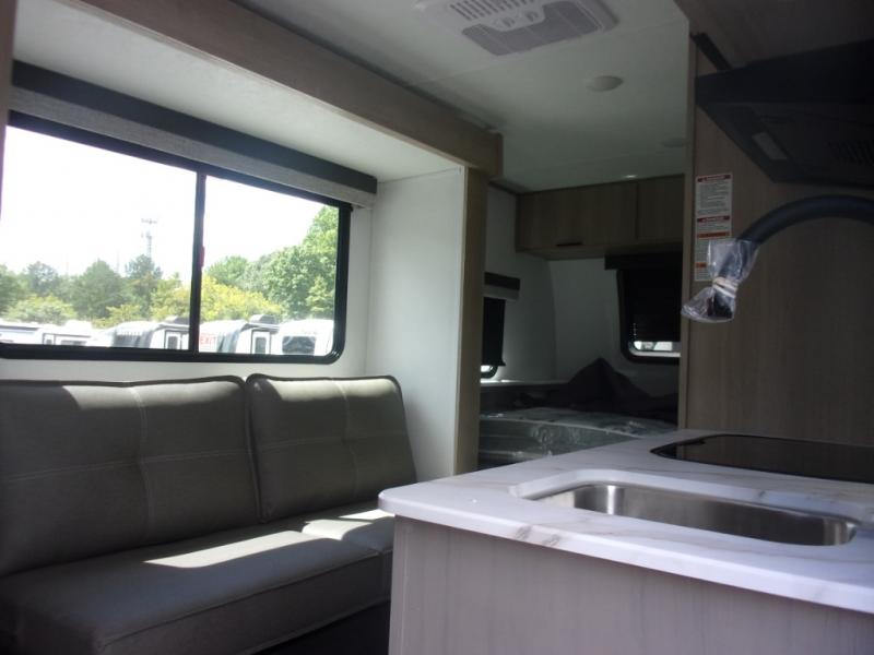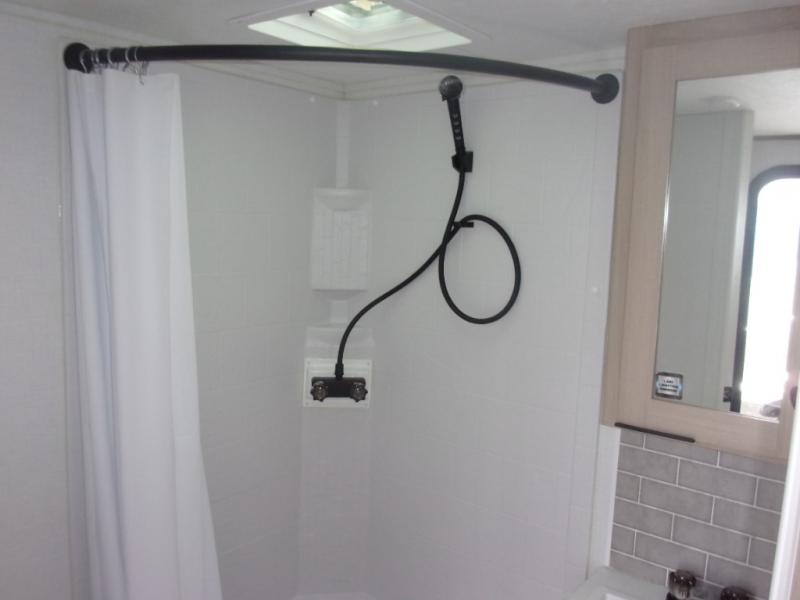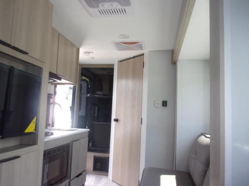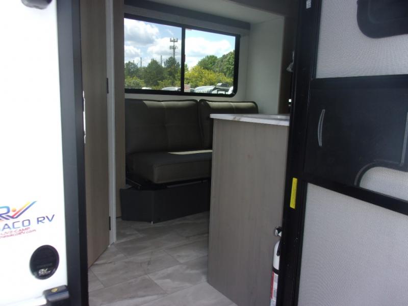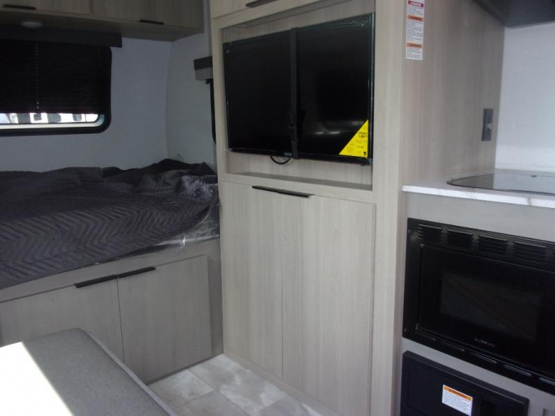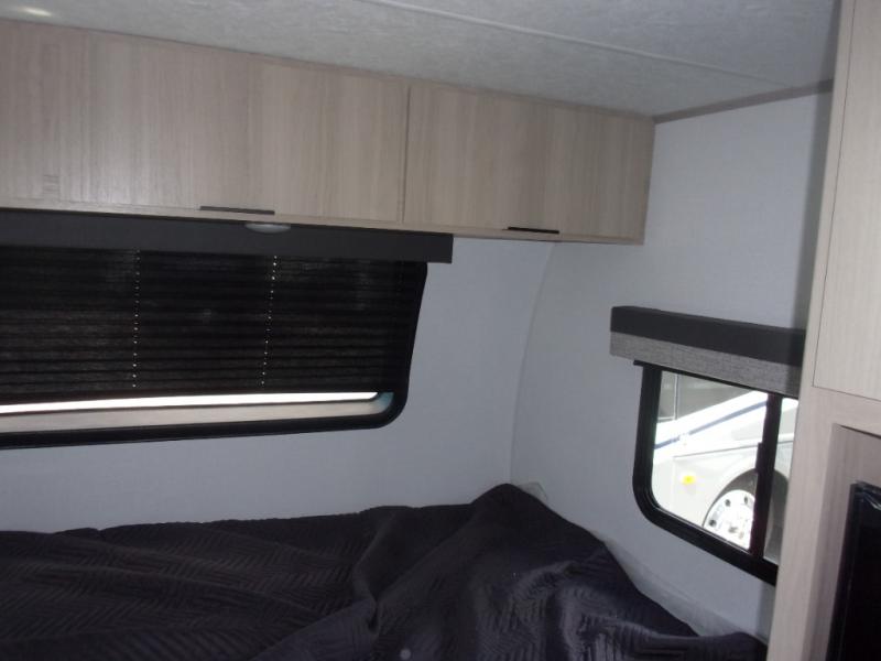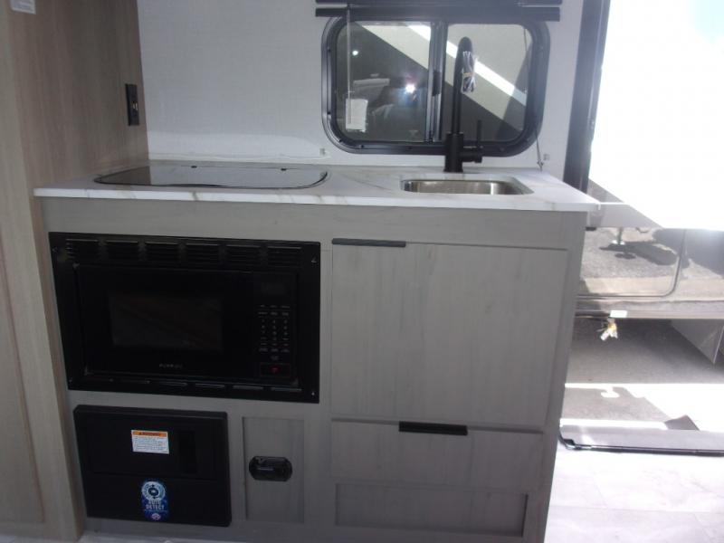 This cozy travel trailer will be perfect for weekend stays at the campground! You will have a front queen bed to sleep on instead of on the floor or an air mattress, and the full bath is a luxury you won't want to camp without. After you've whipped up breakfast on the two burner cooktop or in the microwave oven, you can dine at the jackknife sofa with an indoor/outdoor table. This model also includes a 10 cu. ft. refrigerator and pantry for food storage!