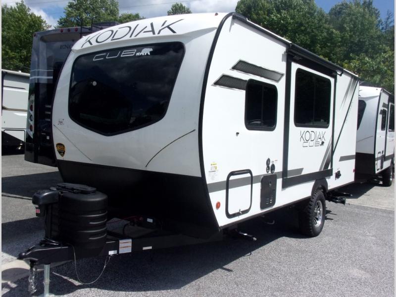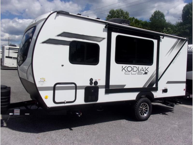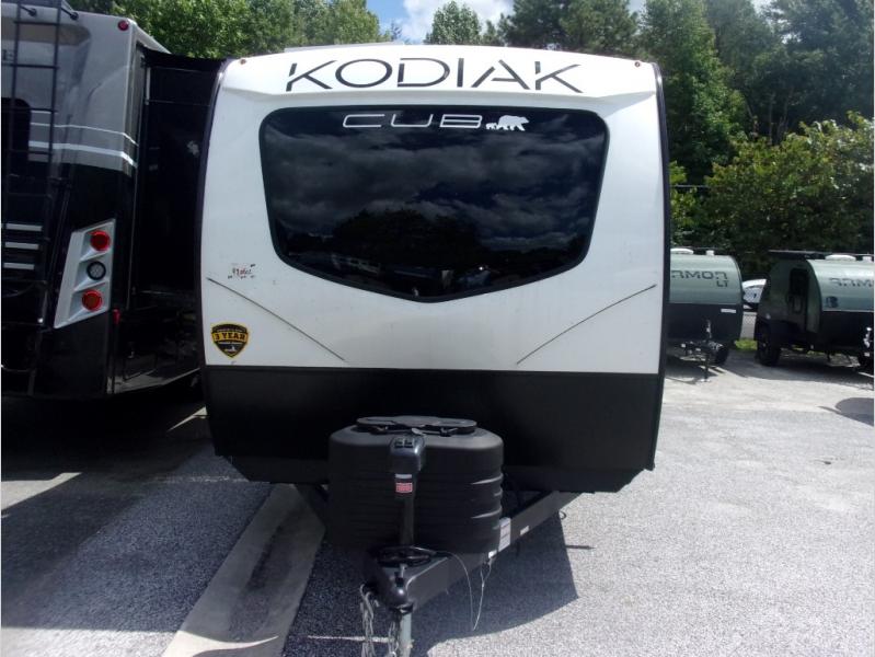 With any Kodiak Cub travel trailer by Dutchmen, you will enjoy lightweight towing and at-home comforts! Each model is constructed with aluminum framing and a laminated roof, plus front diamond plate protection against rock and debris. You will also find a power tongue jack outside, along with hybrid aluminum steps, plus electric front and rear stabilizer jacks for easy set-up. Head inside to enjoy the roller night shades, Home Series interior decor collection, and seamless countertops. There is also a central command center, a Bluetooth speaker, HyperDeck flooring, plus a furnace and A/C unit to keep you comfortable year around!