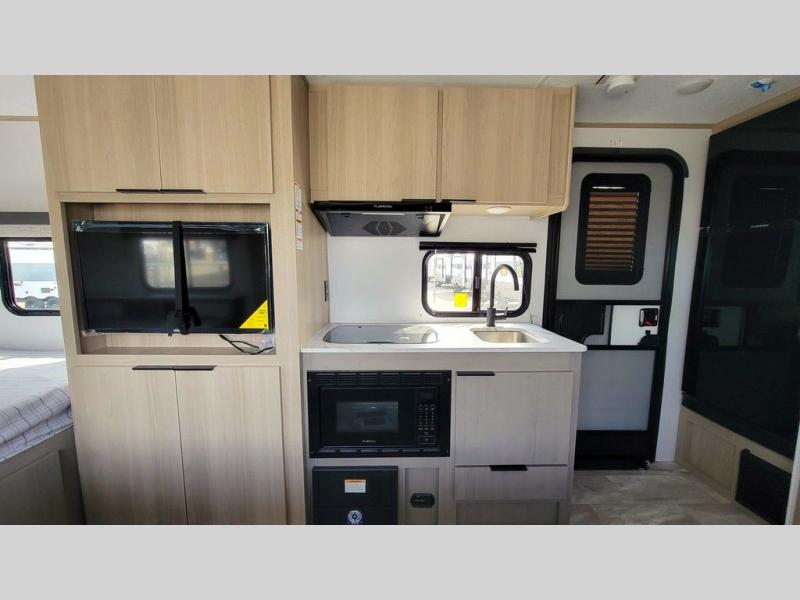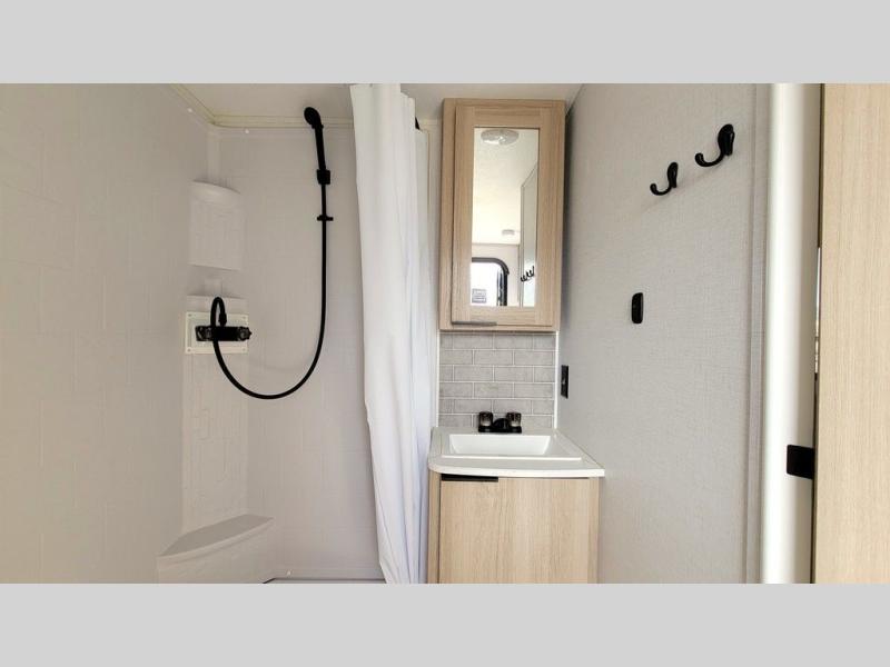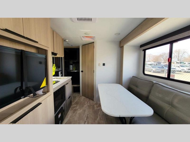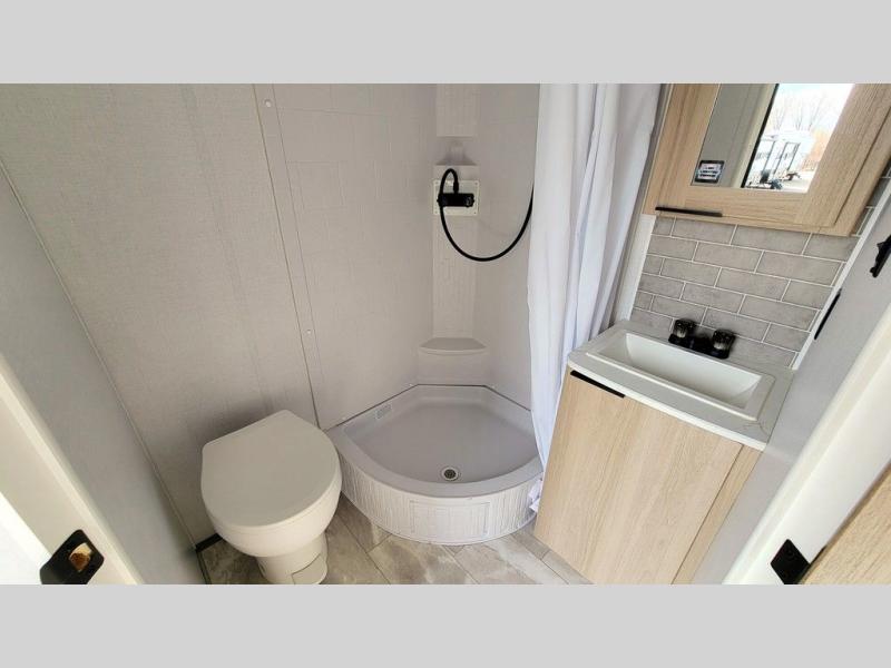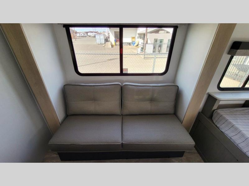 This cozy travel trailer will be perfect for weekend stays at the campground! You will have a front queen bed to sleep on instead of on the floor or an air mattress, and the full bath is a luxury you won't want to camp without. After you've whipped up breakfast on the two burner cooktop or in the microwave oven, you can dine at the jackknife sofa with an indoor/outdoor table. This model also includes a 10 cu. ft. refrigerator and pantry for food storage!
