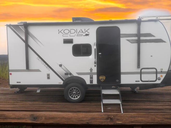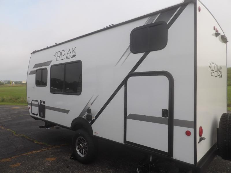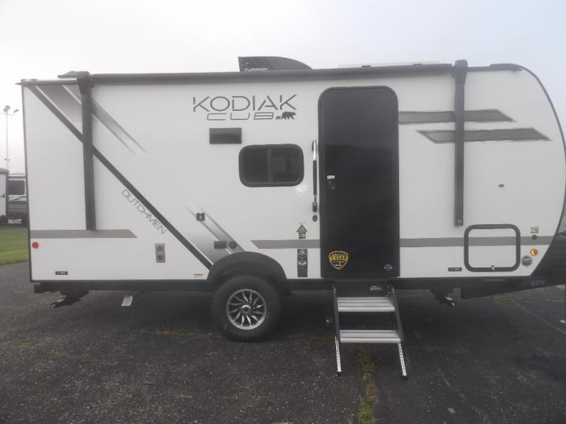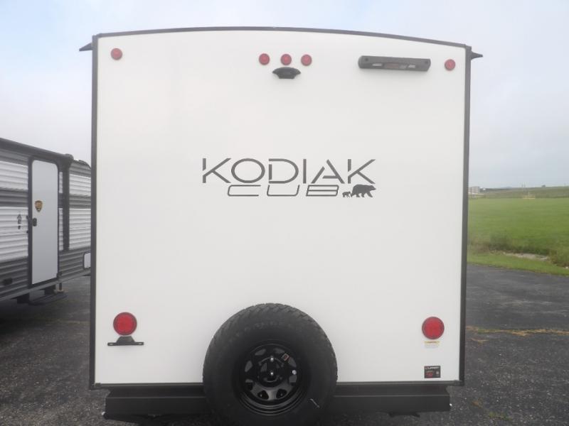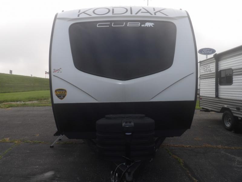 With any Kodiak Cub travel trailer by Dutchmen, you will enjoy lightweight towing and at-home comforts! Each model is constructed with aluminum framing and a laminated roof, plus front diamond plate protection against rock and debris. You will also find a power tongue jack outside, along with hybrid aluminum steps, plus electric front and rear stabilizer jacks for easy set-up. Head inside to enjoy the roller night shades, Home Series interior decor collection, and seamless countertops. There is also a central command center, a Bluetooth speaker, HyperDeck flooring, plus a furnace and A/C unit to keep you comfortable year around!