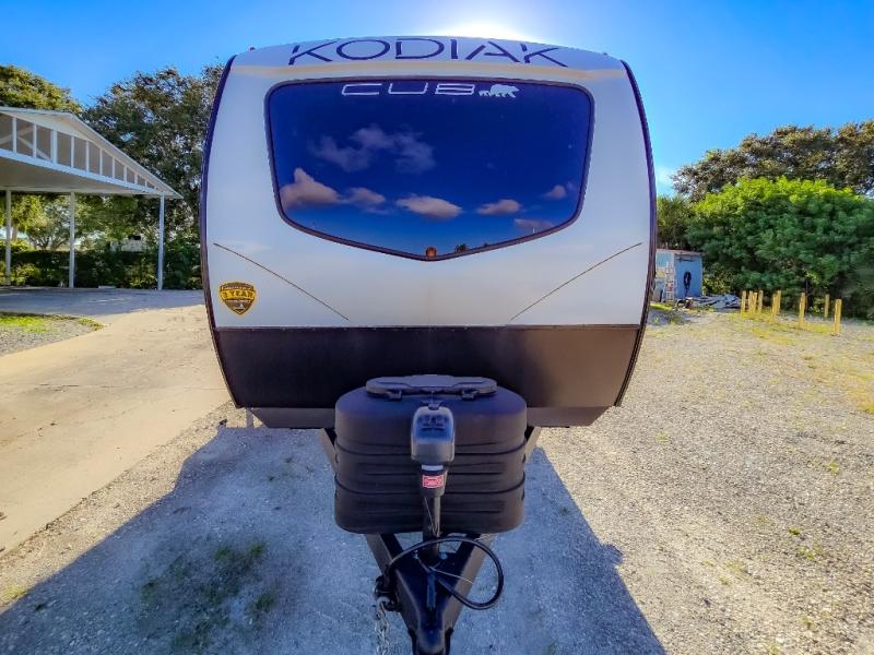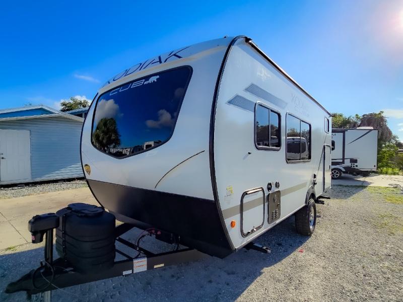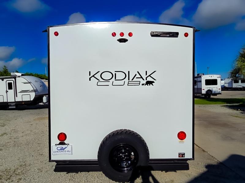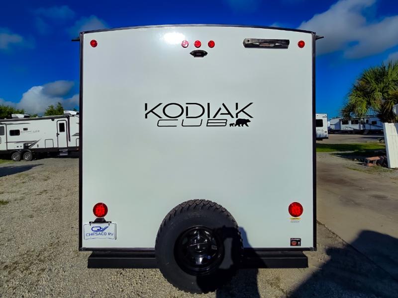 With any Kodiak Cub travel trailer by Dutchmen, you will enjoy lightweight towing and at-home comforts! Each model is constructed with aluminum framing and a laminated roof, plus front diamond plate protection against rock and debris. You will also find a power tongue jack outside, along with hybrid aluminum steps, plus electric front and rear stabilizer jacks for easy set-up. Head inside to enjoy the roller night shades, Home Series interior decor collection, and seamless countertops. There is also a central command center, a Bluetooth speaker, HyperDeck flooring, plus a furnace and A/C unit to keep you comfortable year around!