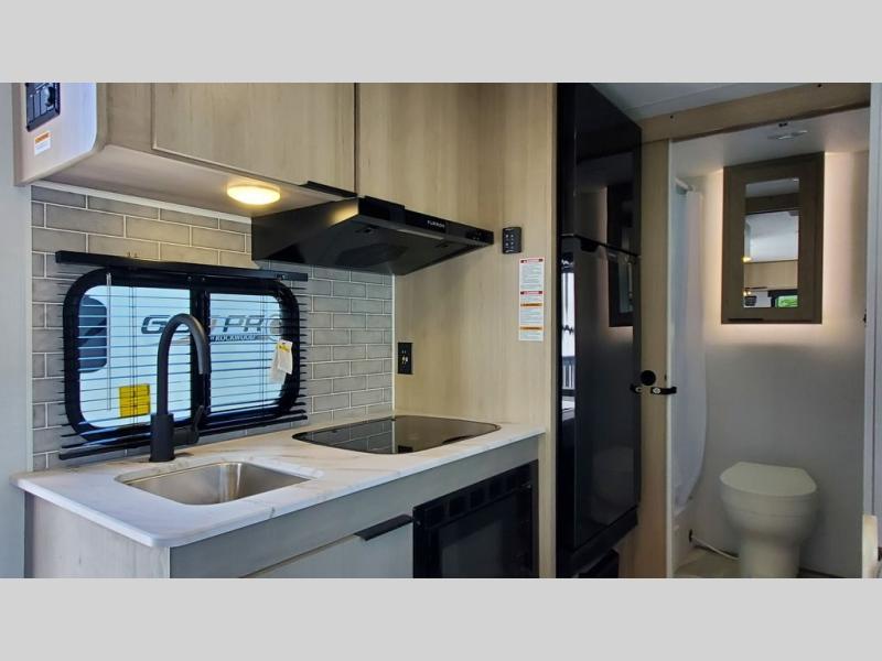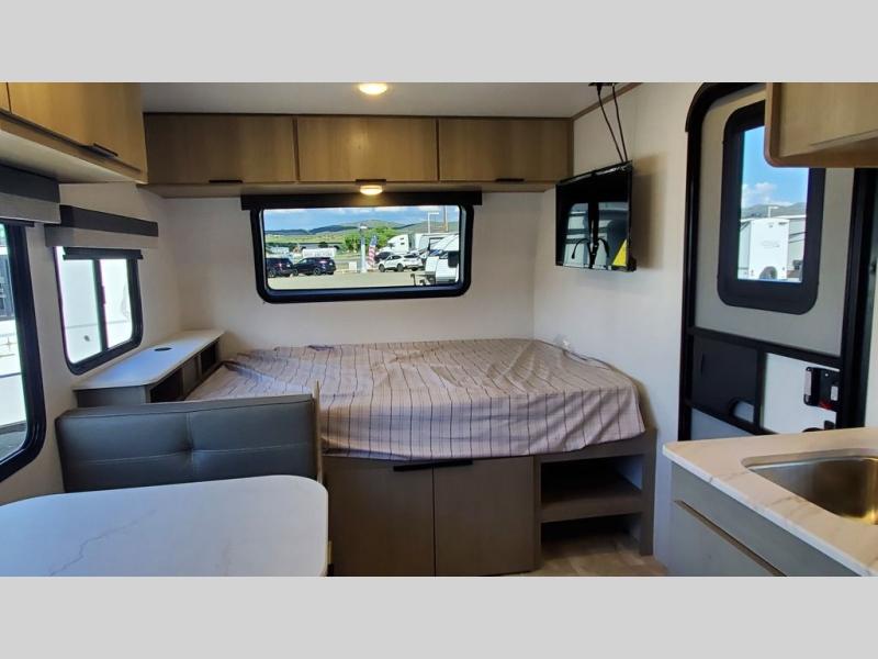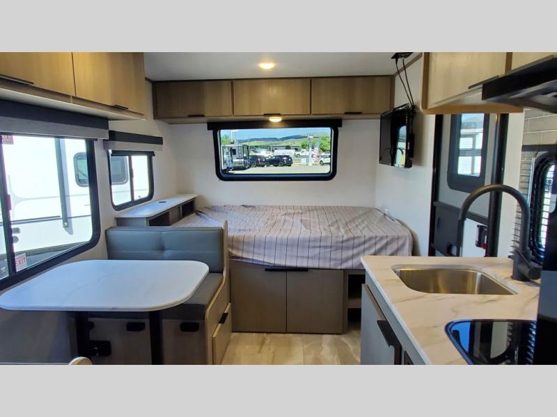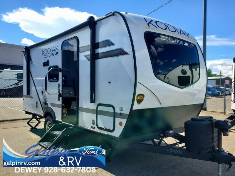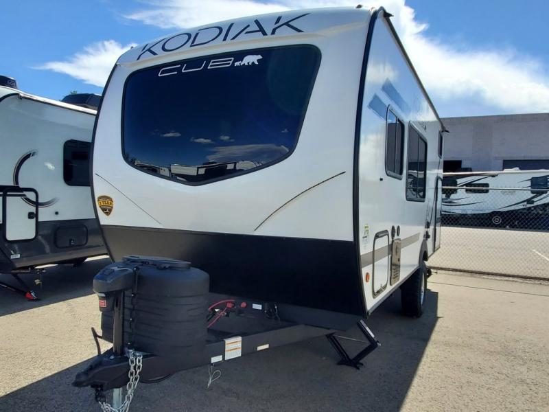 With any Kodiak Cub travel trailer by Dutchmen, you will enjoy lightweight towing and at-home comforts! Each model is constructed with aluminum framing and a laminated roof, plus front diamond plate protection against rock and debris. You will also find a power tongue jack outside, along with hybrid aluminum steps, plus electric front and rear stabilizer jacks for easy set-up. Head inside to enjoy the roller night shades, Home Series interior decor collection, and seamless countertops. There is also a central command center, a Bluetooth speaker, HyperDeck flooring, plus a furnace and A/C unit to keep you comfortable year around!