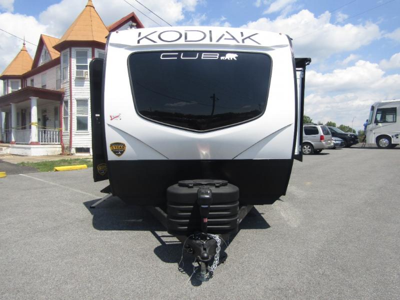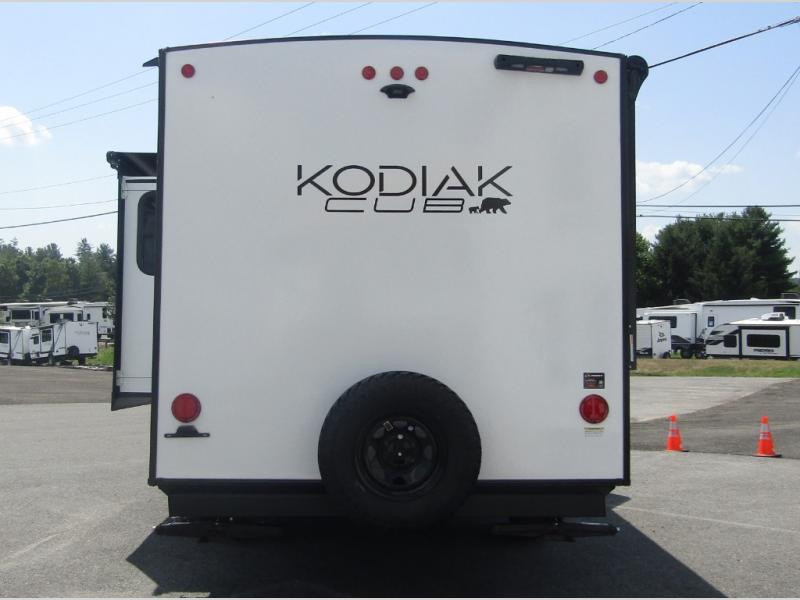 With any Kodiak Cub travel trailer by Dutchmen, you will enjoy lightweight towing and at-home comforts! Each model is constructed with aluminum framing and a laminated roof, plus front diamond plate protection against rock and debris. You will also find a power tongue jack outside, along with hybrid aluminum steps, plus electric front and rear stabilizer jacks for easy set-up. Head inside to enjoy the roller night shades, Home Series interior decor collection, and seamless countertops. There is also a central command center, a Bluetooth speaker, HyperDeck flooring, plus a furnace and A/C unit to keep you comfortable year around!