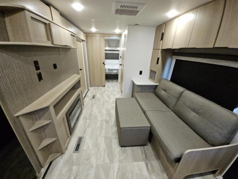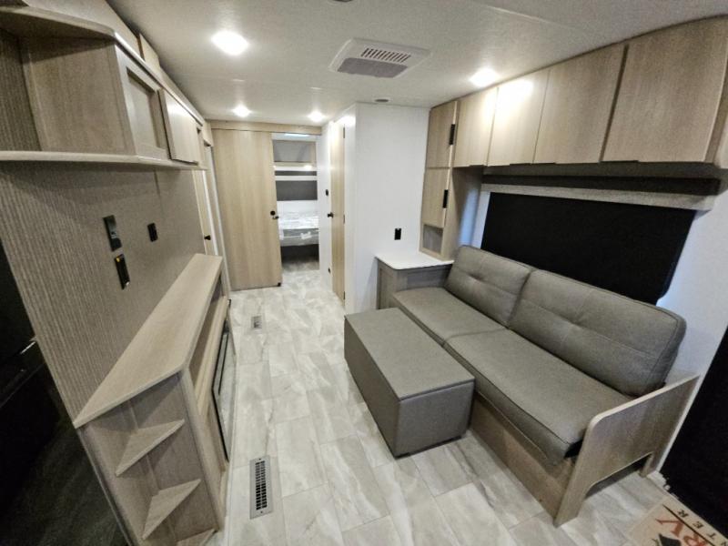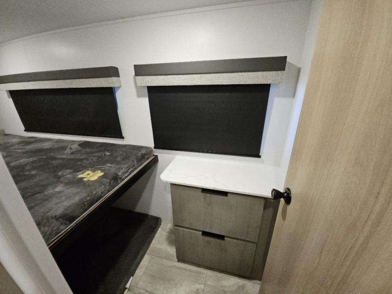 HIDDEN BUNK ROOM/ REAR KITCHEN / POWER STABILIZER JACKS/ SLIDEOUT AWNING / WITH 200 W SOLAR PANEL SYSTEM