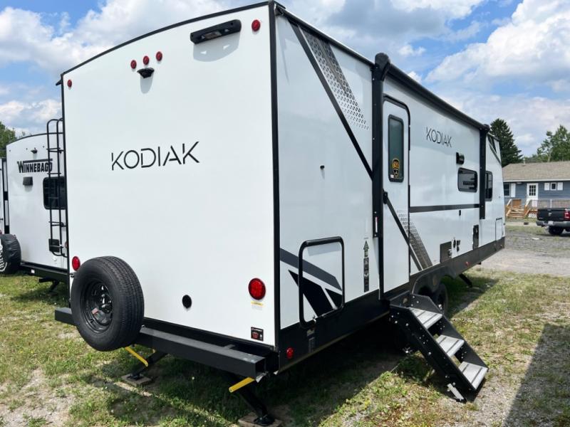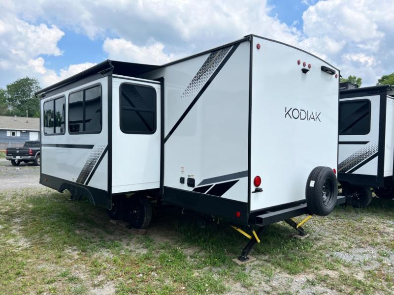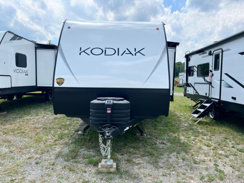 With any Kodiak SE travel trailer by Dutchmen RV, you can experience comfort while camping at a moment's notice. Each trailer includes features such as power front and rear stabilizer jacks and a power tongue jack which makes set-up easy, and a power awning with LED light for convenient outdoor living. Each model features HyperDeck flooring, and carpet free slides making them easy to clean. From the floor structure which includes a fully enclosed underbelly to the laminated walls with aluminum frame with block foam insulation, any Kodiak SE is built lightweight and ready for adventure!