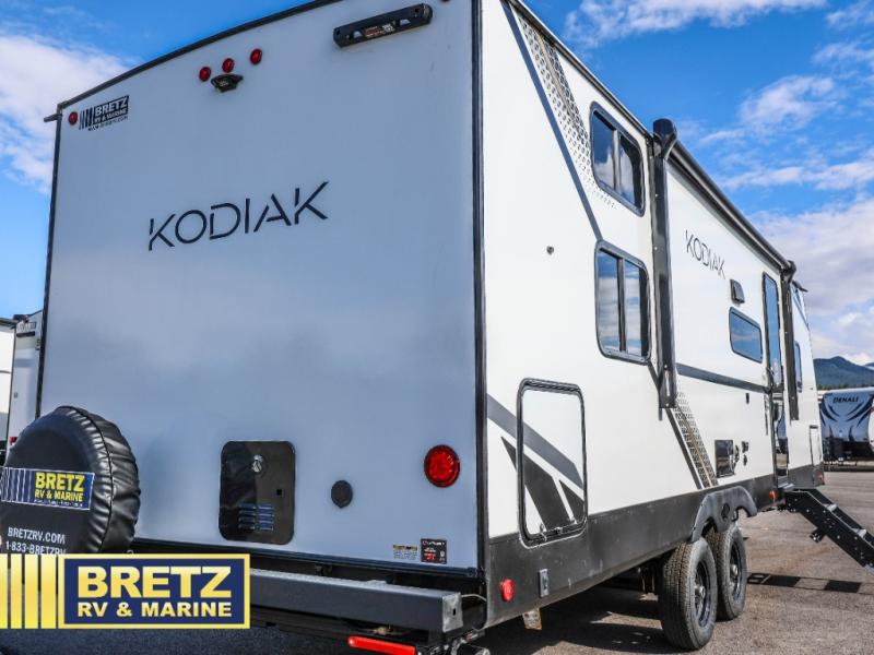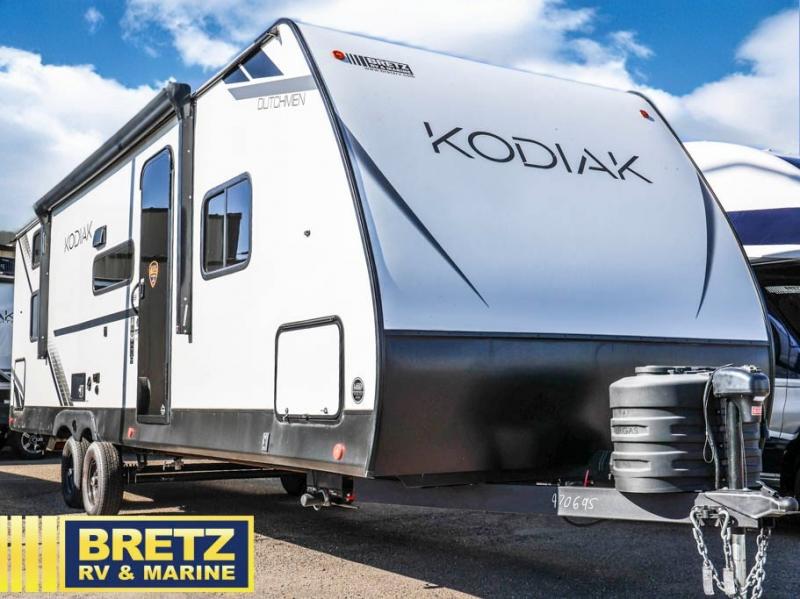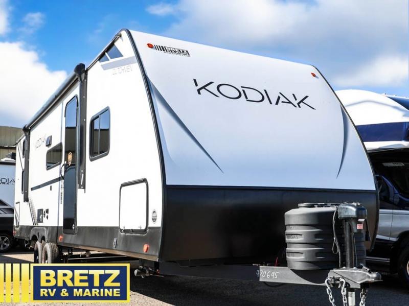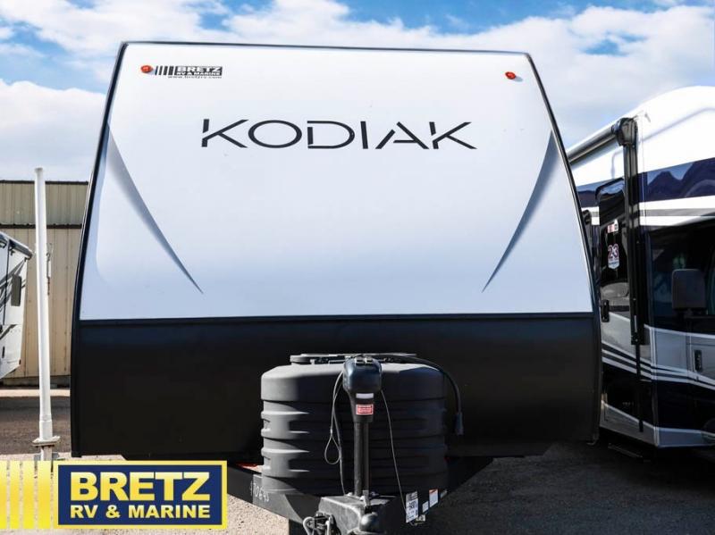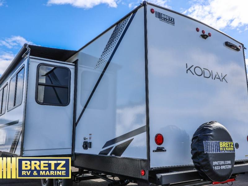 With any Kodiak SE travel trailer by Dutchmen RV, you can experience comfort while camping at a moment's notice. Each trailer includes features such as power front and rear stabilizer jacks and a power tongue jack which makes set-up easy, and a power awning with LED light for convenient outdoor living. Each model features HyperDeck flooring, and carpet free slides making them easy to clean. From the floor structure which includes a fully enclosed underbelly to the laminated walls with aluminum frame with block foam insulation, any Kodiak SE is built lightweight and ready for adventure!
