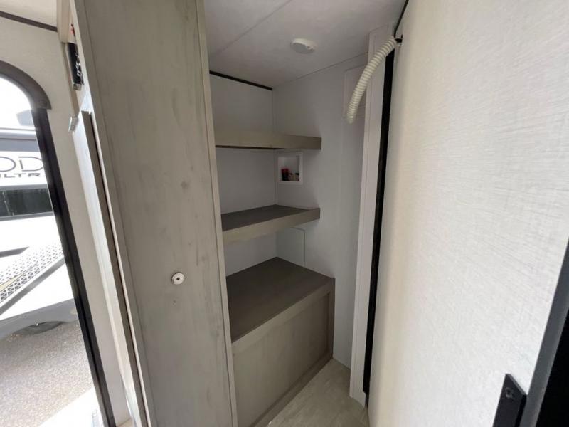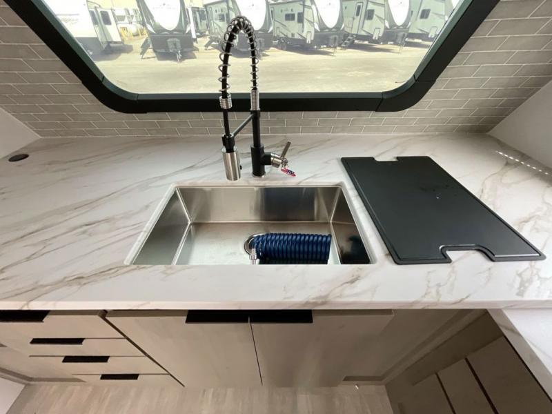 Each Kodiak Ultimate travel trailer by Dutchmen is constructed with an insulated reinforced front cap and diamond plate front rock guard to protect your RV from rock and debris on the way to the campground. The aluminum entry steps are not only dependably, but they collapse and expand quickly so you can get on the road in no-time! These models feature HyperDeck flooring that includes fiberglass reinforced thermoplastic and a fully enclosed underbelly, and the Bear Cave storage allows you to bring along all of your hiking and fishing gear. Some of the interior features you are sure to love are the modern decor choices, dual motion sensory bathroom LED lights, stainless kitchen sink with an apron front, plus a central control panel to easily keep track of your units functions. Your next adventure starts with a Kodiak Ultimate travel trailer!