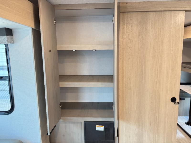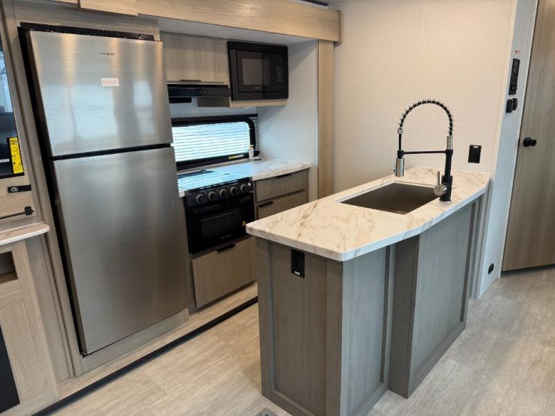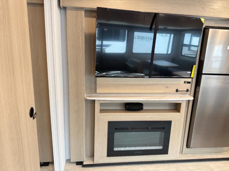A private bunkhouse makes this travel trailer the perfect family-friendly RV. Or if you like to camp with friends, they will enjoy their own space each night here. Everyone can gather in the main living room to dine at the booth dinette or relax on the jack knife sofa in front of the fireplace if the weather isn't cooperating. If the sun is out, you will probably find the chef of your group outdoors at the outside kitchen grilling up some burgers under the 18' power awning. There is plenty of storage space for all your belongings, including an exterior pass-through storage for your larger gear. You and your spouse will have the front master bedroom all to yourselves with a king bed for comfort!