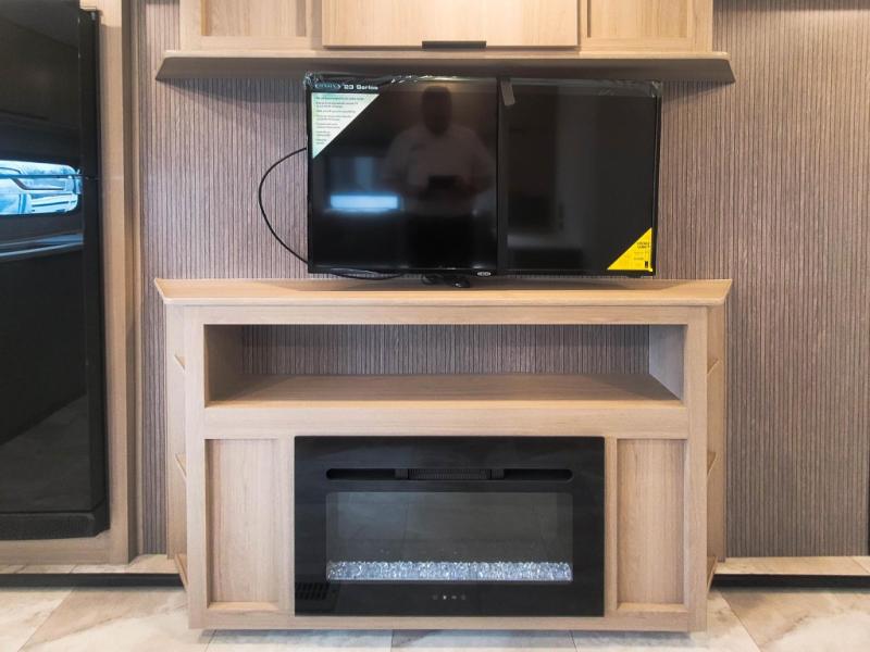 Big features in a Kodiak: rear kitchen storage, mid bath convenience, and a fireplace for cozy nights.