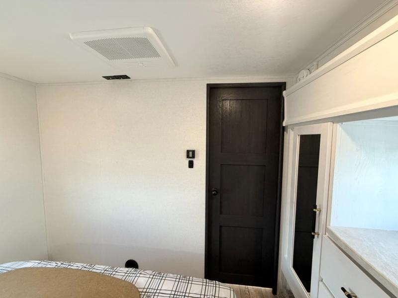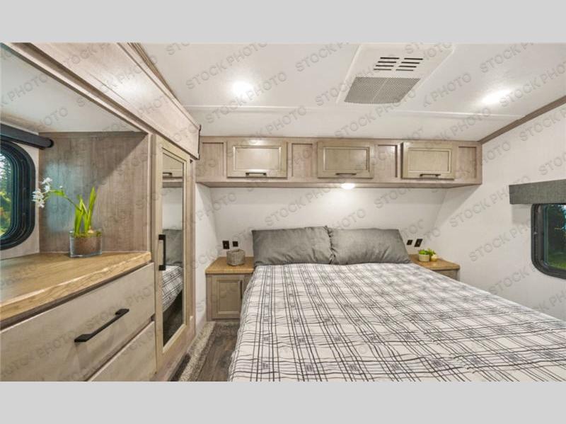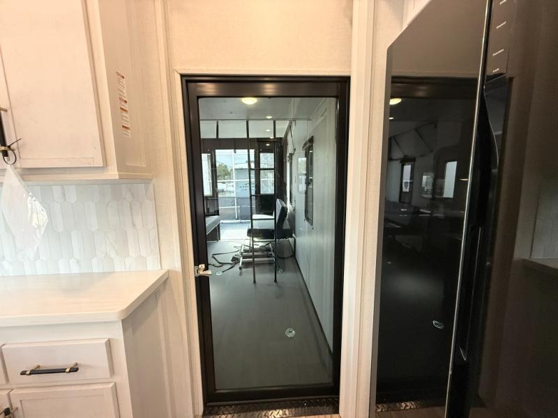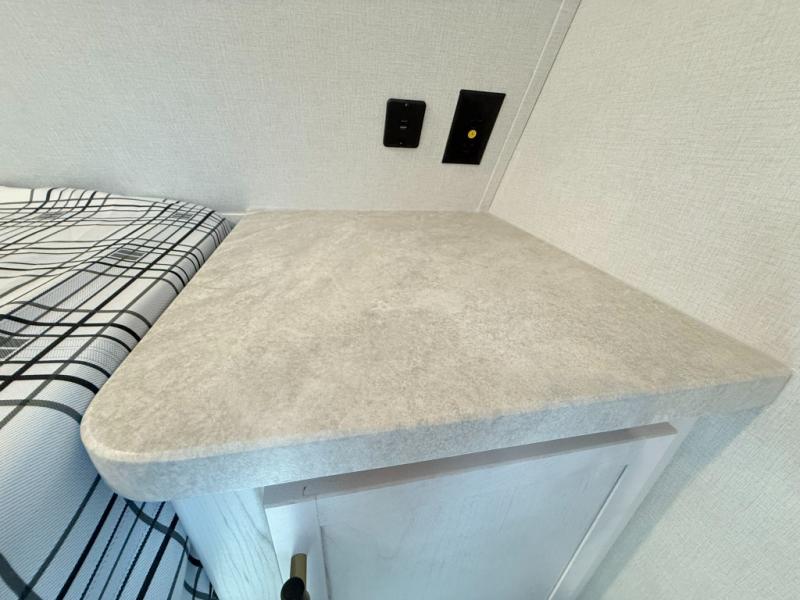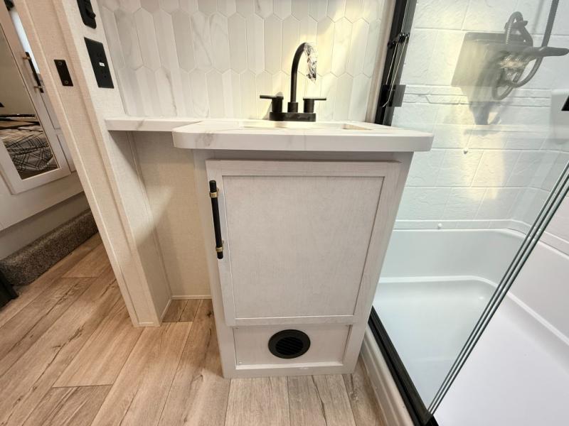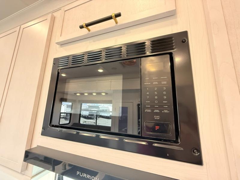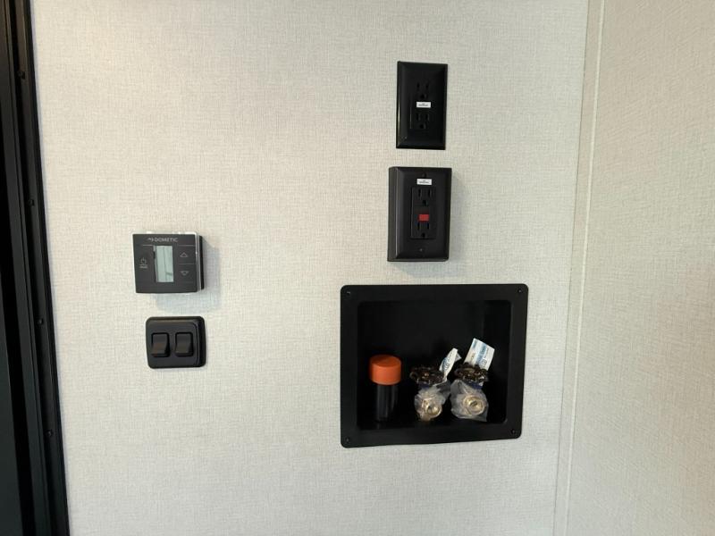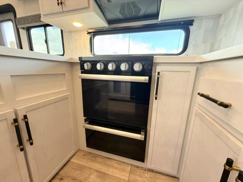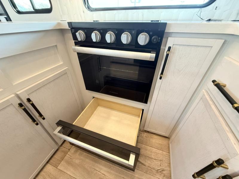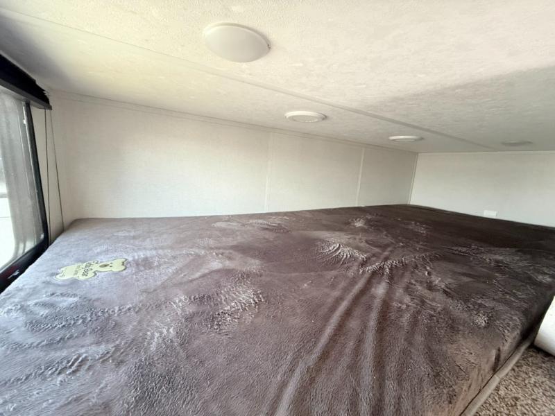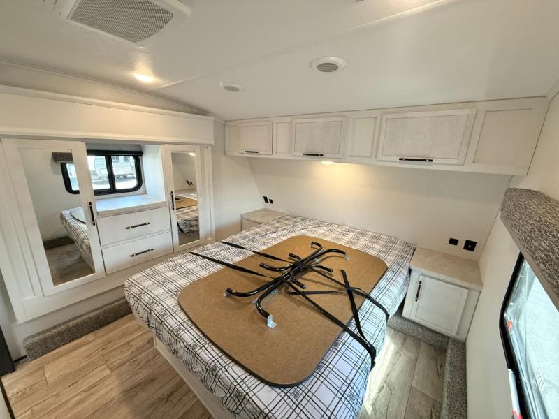 Load up your favorite off-road toys, grab a few friends and head out for a weekend of fun! This Voltage V-Series features a 14' garage with sleeping for seven or eight with the Bed Lift System over the dual sofas and dinette which convert to more sleeping in the garage area, a loft, and private front bedroom with queen bed. The main combined kitchen and living space features a reclining sofa with foot rest housed in the large slide that also includes a 16 cu. ft. 12V refrigerator and pantry for all of your food storage needs. There are full kitchen and bath amenities to keep you fueled and clean, and you will also enjoy the 40" TV and fireplace when relaxing inside. A 21' awning offers additional living space outside, and there is a Pac & Stack half bath in the garage for added convenience when coming in from a ride located beneath the loft. This unit also offers ample storage with a full pass-through compartment outside, and inside cabinets, pantry storage, plus wardrobe, dresser, and under bed storage as well.