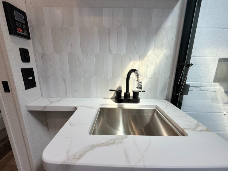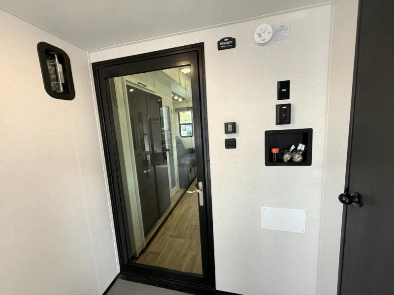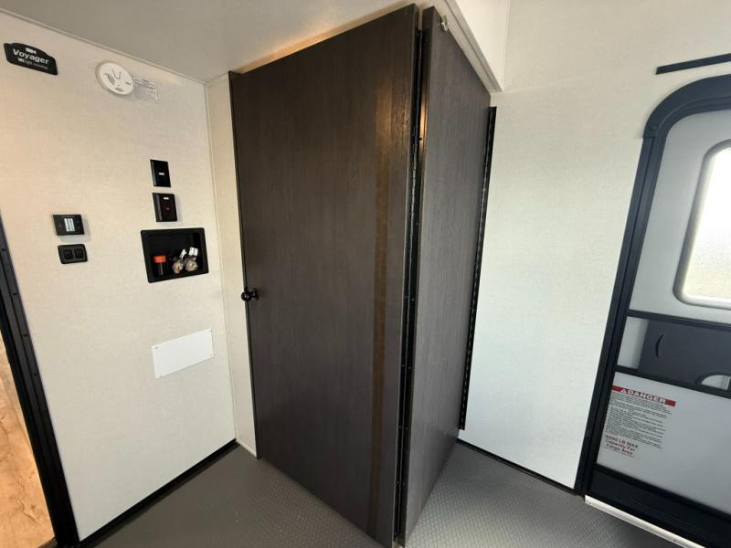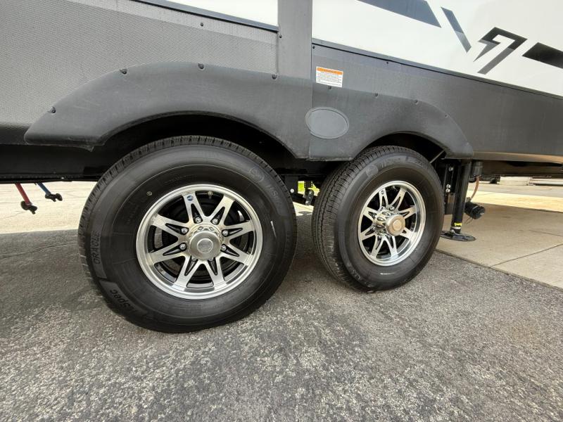 The Voltage V-Series by Dutchmen RV is a smaller and lighter weight choice when it comes to a toy hauler. These were designed with the same comforts that you would find in the standard Voltage models with the Signature Series collection including glazed cabinets with raised panel cabinet doors, modern hardware throughout, upgraded finishes and custom paint and stain. You will also enjoy the tankless water heater, garage Bed Lift System, Tuff Ply garage floor, and weight assisted ramp door for ease in loading and unloading your toys. A few bonus features like a 50" walk-in shower, 40" fireplace, and 30 gallon fuel station just makes your adventures that much more enjoyable! Come choose the Voltage V-Series as your new lightweight companion toy hauler today!