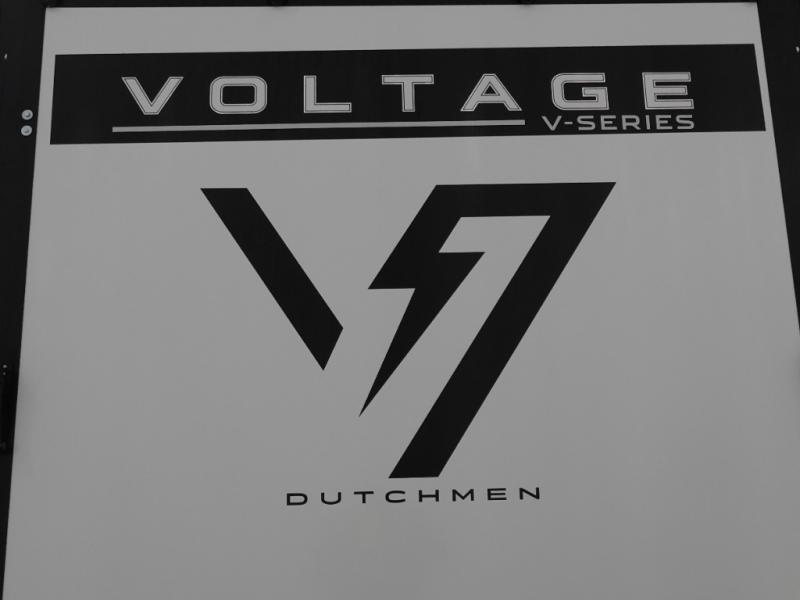The Voltage V-Series by Dutchmen RV is a smaller and lighter weight choice when it comes to a toy hauler. These were designed with the same comforts that you would find in the standard Voltage models with the Signature Series collection including glazed cabinets with raised panel cabinet doors, modern hardware throughout, upgraded finishes and custom paint and stain. You will also enjoy the tankless water heater, garage Bed Lift System, Tuff Ply garage floor, and weight assisted ramp door for ease in loading and unloading your toys. A few bonus features like a 50" walk-in shower, 40" fireplace, and 30 gallon fuel station just makes your adventures that much more enjoyable! Come choose the Voltage V-Series as your new lightweight companion toy hauler today!