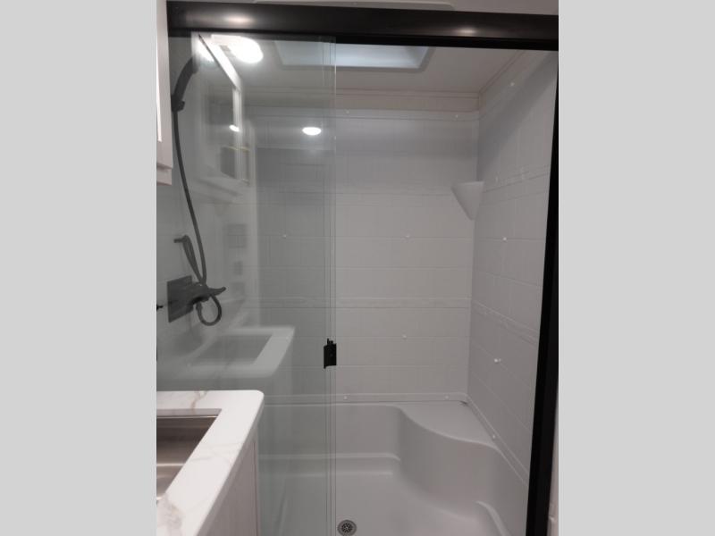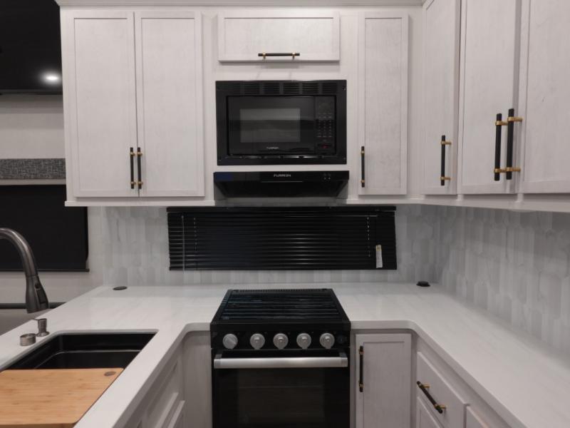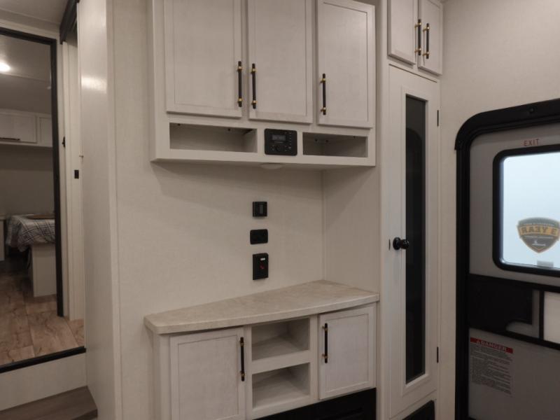 The Voltage V-Series by Dutchmen RV is a smaller and lighter weight choice when it comes to a toy hauler. These were designed with the same comforts that you would find in the standard Voltage models with the Signature Series collection including glazed cabinets with raised panel cabinet doors, modern hardware throughout, upgraded finishes and custom paint and stain. You will also enjoy the tankless water heater, garage Bed Lift System, Tuff Ply garage floor, and weight assisted ramp door for ease in loading and unloading your toys. A few bonus features like a 50" walk-in shower, 40" fireplace, and 30 gallon fuel station just makes your adventures that much more enjoyable! Come choose the Voltage V-Series as your new lightweight companion toy hauler today!