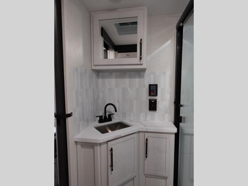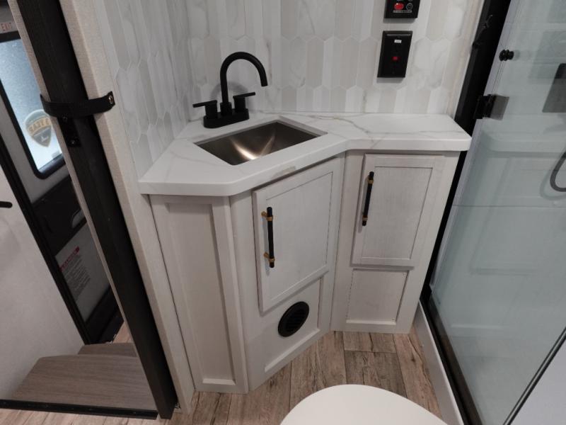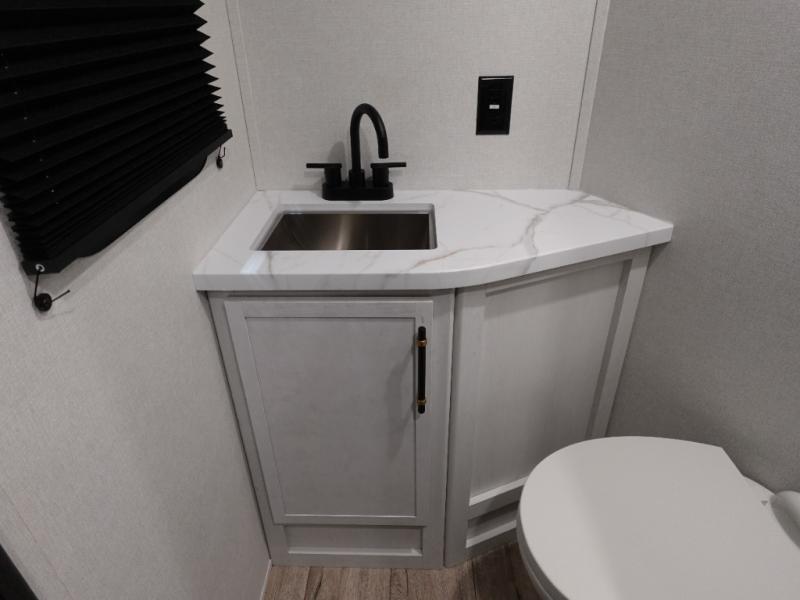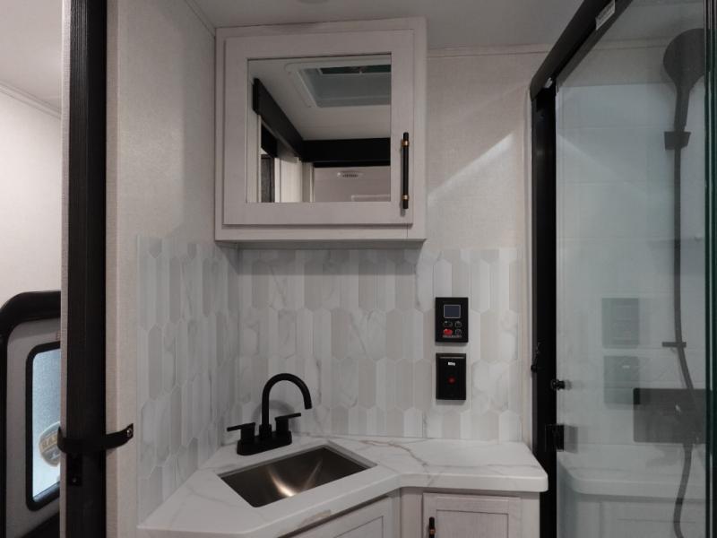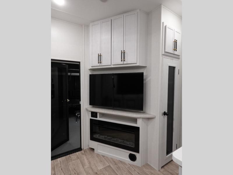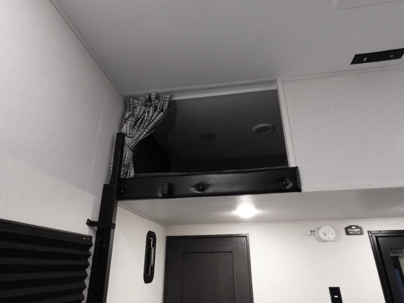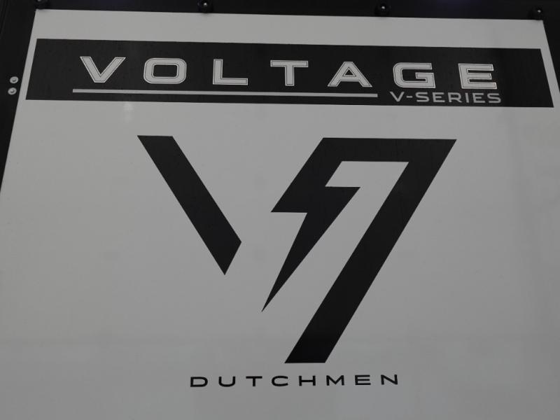The Voltage V-Series by Dutchmen RV is a smaller and lighter weight choice when it comes to a toy hauler. These were designed with the same comforts that you would find in the standard Voltage models with the Signature Series collection including glazed cabinets with raised panel cabinet doors, modern hardware throughout, upgraded finishes and custom paint and stain. You will also enjoy the tankless water heater, garage Bed Lift System, Tuff Ply garage floor, and weight assisted ramp door for ease in loading and unloading your toys. A few bonus features like a 50" walk-in shower, 40" fireplace, and 30 gallon fuel station just makes your adventures that much more enjoyable! Come choose the Voltage V-Series as your new lightweight companion toy hauler today!