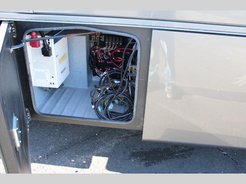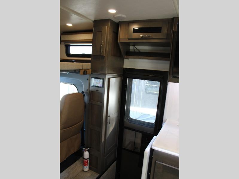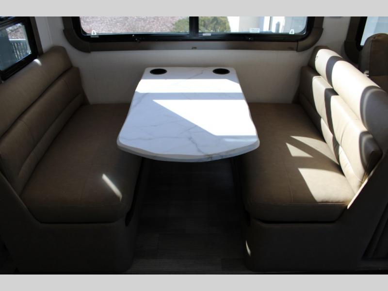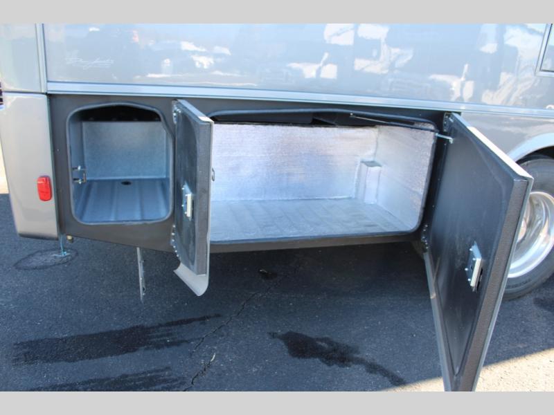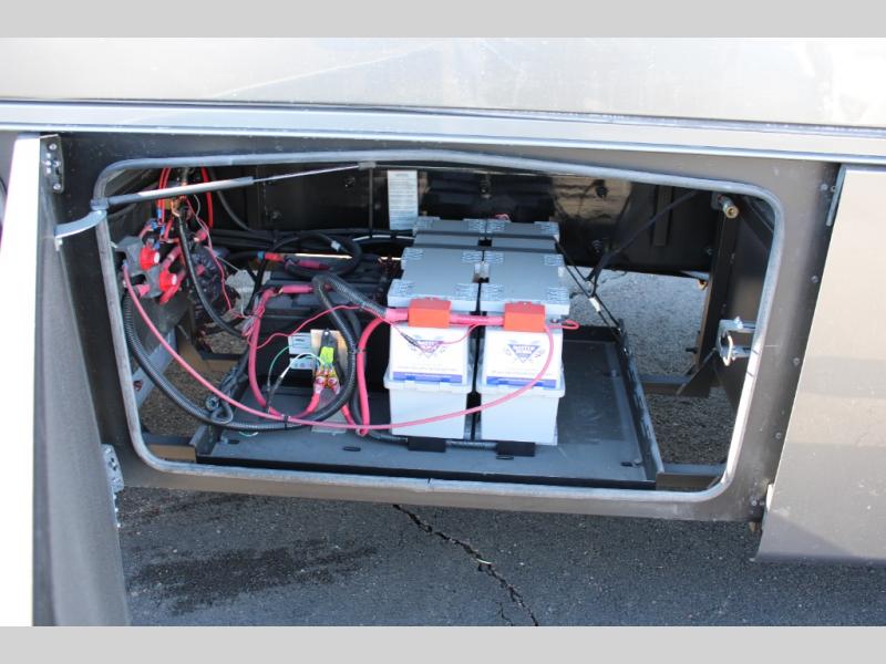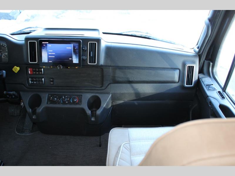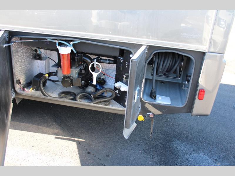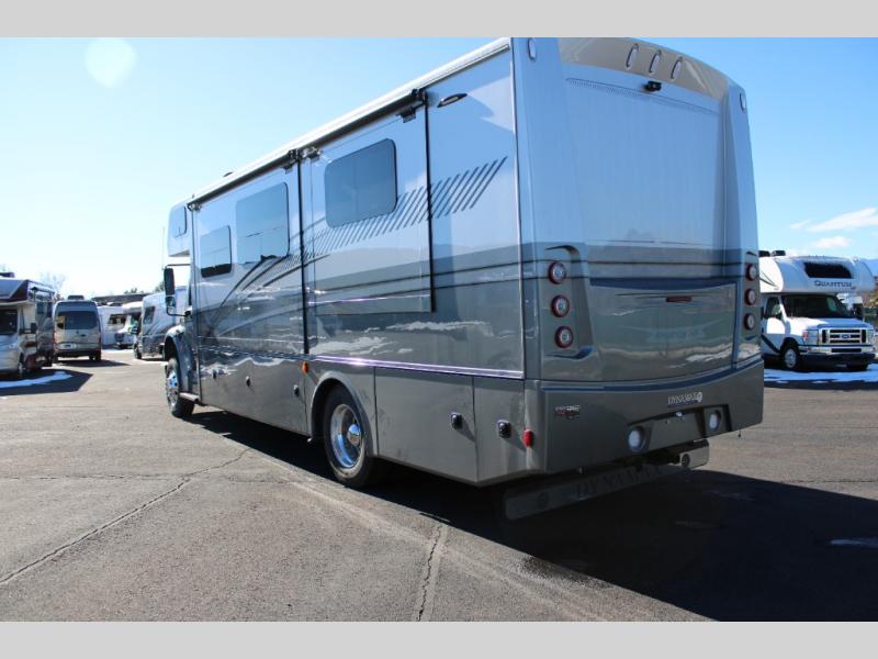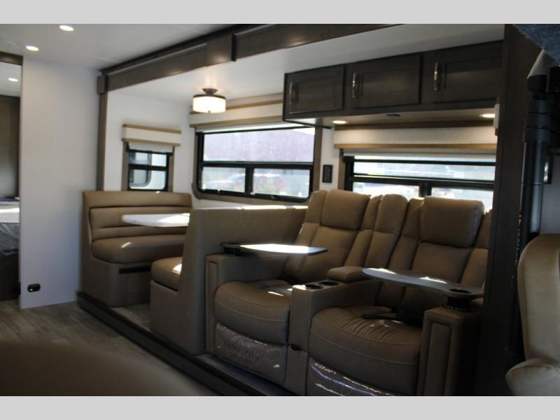 The Europa Super C diesel motorhome by Dynamax is coming to you with all the power, durability, and luxury you need for your adventurous lifestyle. You will love the solid surface countertop with LED edge lighting in the kitchen, the premium vinyl flooring throughout, and the clean, contemporary styling. The on-demand water heater is a luxury you won't want to travel without, and the multiplex wiring with a touch screen command center includes switch panels, and Bluetooth Smart Phone app control for ease of use. There are dual 12V 8D AGM deep-cycle maintenance-free house batteries and a single 200-watt solar panel to go off-grid if you choose, and the 12,000 lb. trailer hitch will allow you to bring along the off-road toys. Some of the exterior features that make this coach great are the armless patio awning with LED lighting, the automatic four-point hydraulic leveling jacks, and the eye-catching custom full-body paint package!