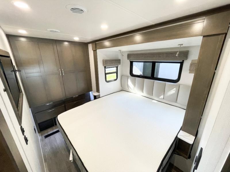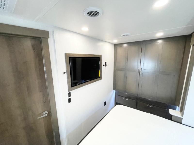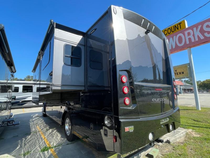 Trips across the state or country are made luxurious in this double slide out coach. The captain's seats can become a part of the living area once you are parked, and your guests can relax on the sofa sleeper or play a game at the booth dinette. There is also a 39" LED Smart TV across from the sofa for easy viewing. You will enjoy cooking in the kitchen on the sealed gas range or in the convection microwave, plus there is a 16 cu. ft. residential refrigerator with an ice maker for perishables. This Europa also features a rear master suite with a king bed slide out, a 32" LED Smart TV, and a large cedar-lined wardrobe. There are even LED reading lights and USB ports for added convenience. And you may want to add the cab-over bunk option to sleep more guests!